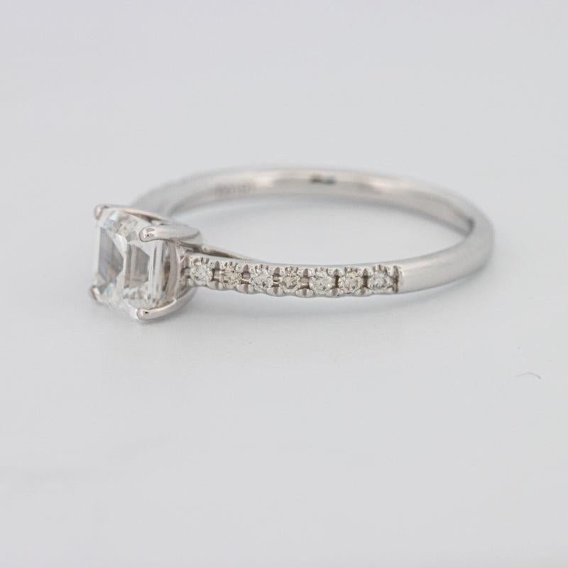 HRD Certified • Square Radiant 1.07 ct — E / VS2 • Pavé Sidestones 0.25 ct — F / VS • 18K White Gold