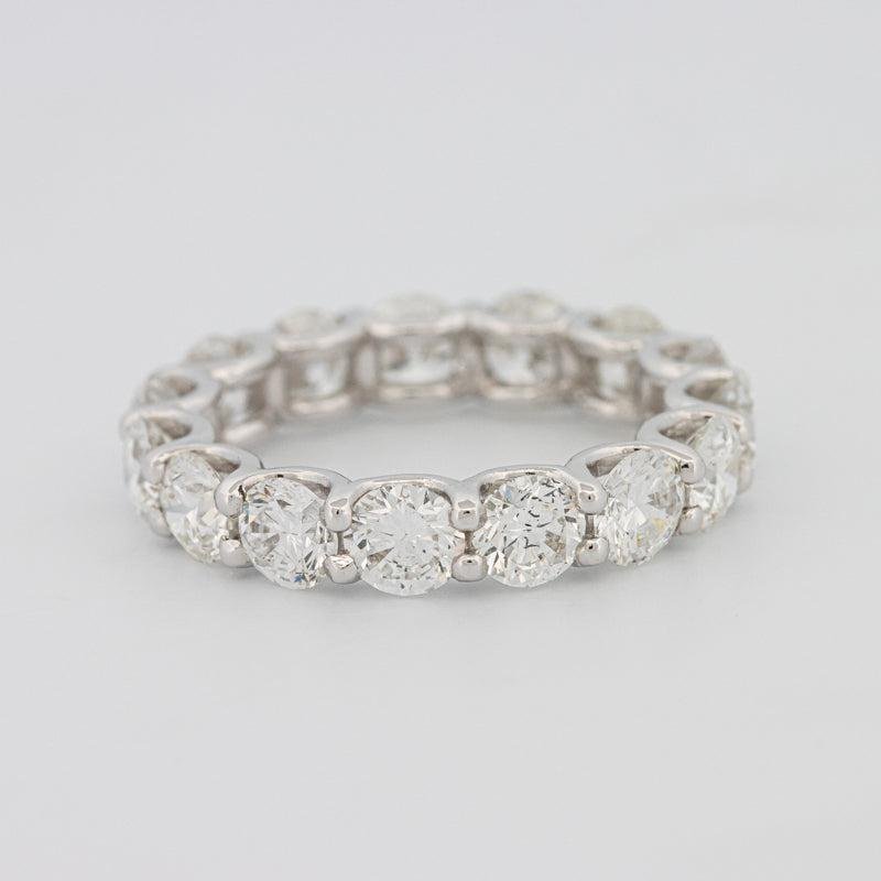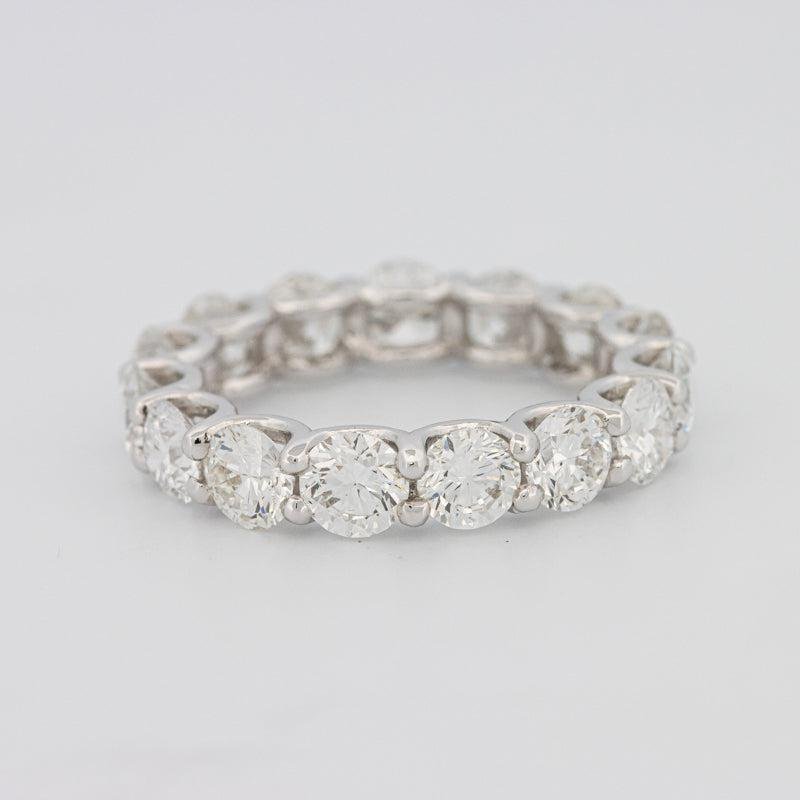 Crafted in 18K white gold (3.70g) with 4.65 ct of diamonds, this full eternity band offers luxurious sparkle and confident presence—ideal as an anniversary piece.