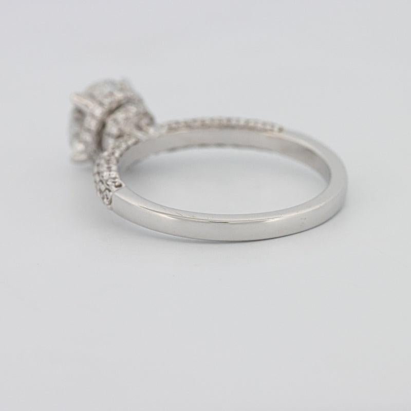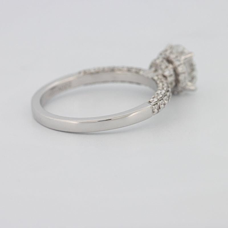 Under‑Halo & Pavé: Side diamonds 0.75 ct total — E / VVS