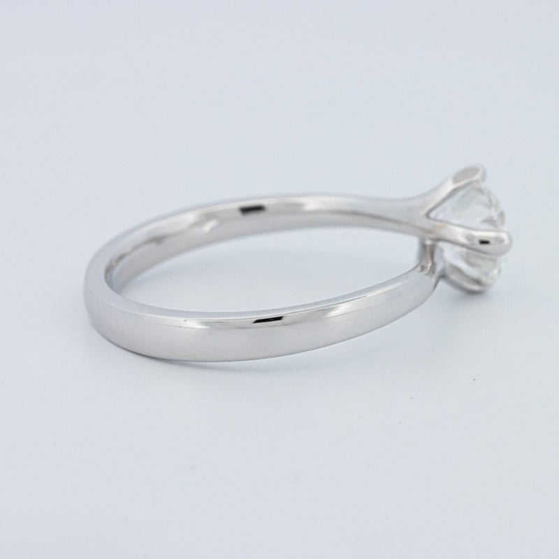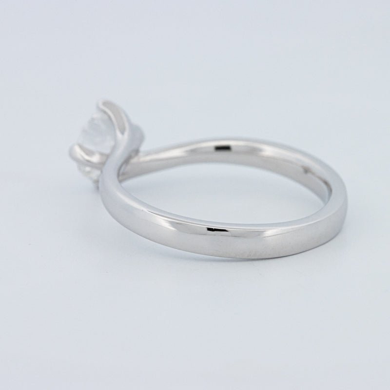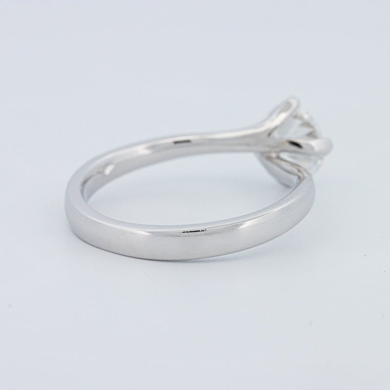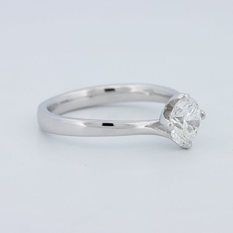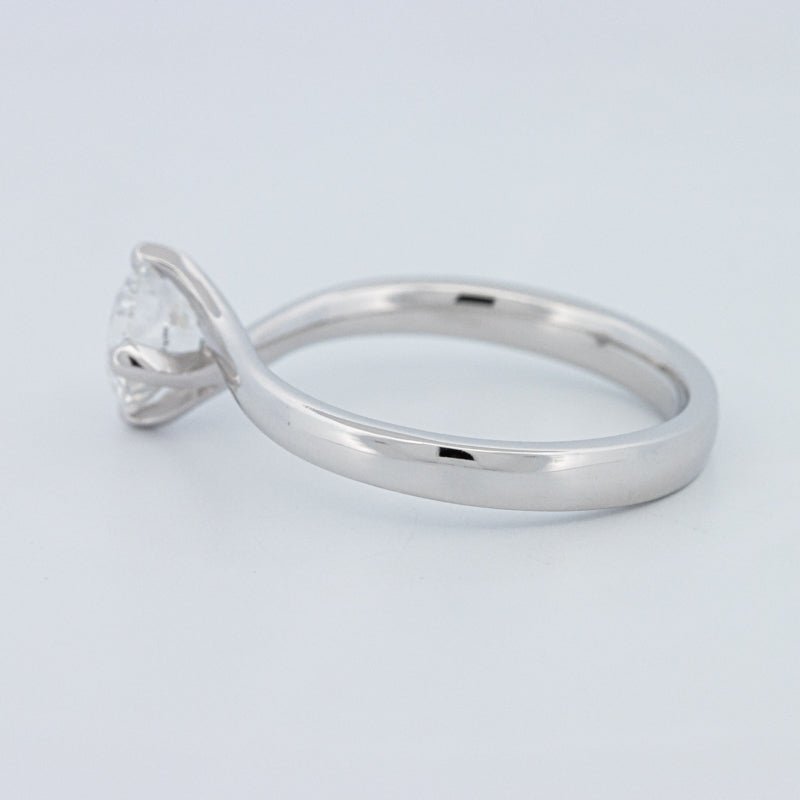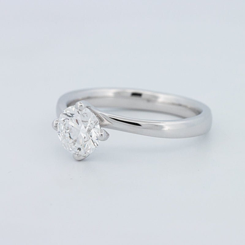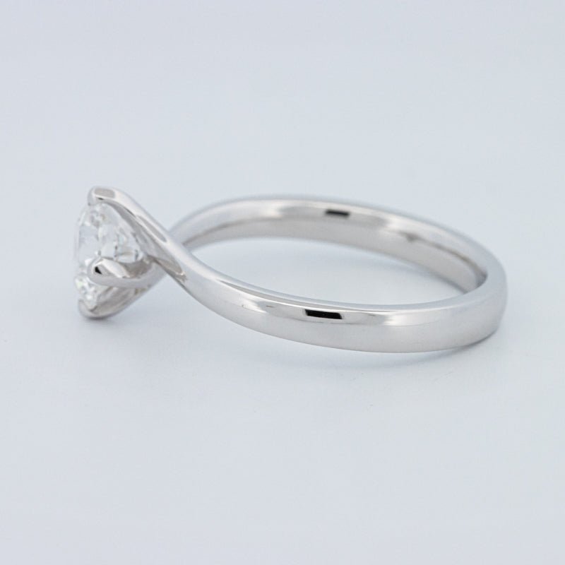 A 1.06 ct E/VVS2 lab‑grown round brilliant sits in a refined twist‑band solitaire, offering crisp white fire and a clean, high‑clarity face‑up.