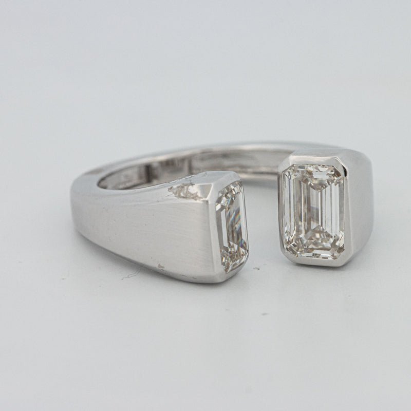 The “Chunky Emerald Reflection” Ring features two D/VVS lab‑grown emerald cut diamonds totaling 2.10 ct, meticulously aligned to mirror geometric precision and radiant clarity.