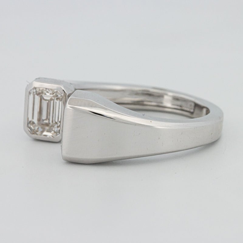 Its bold yet graceful design highlights the emerald cuts’ step facets within a sculptural band, creating a refined statement of luxury and modern minimalism.