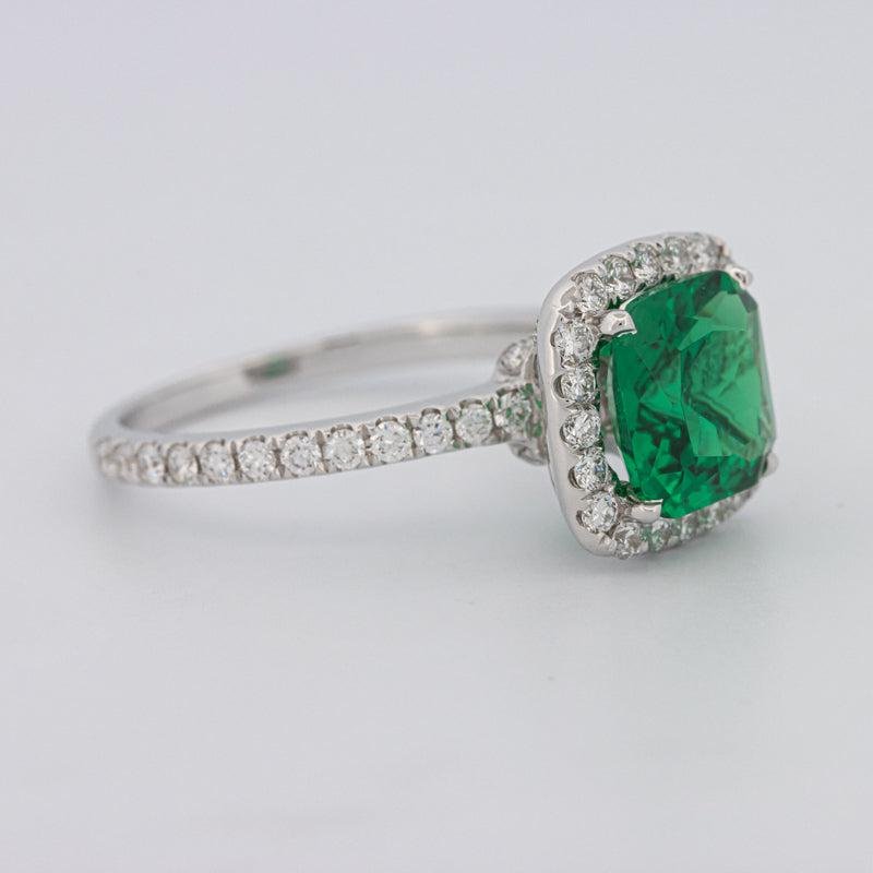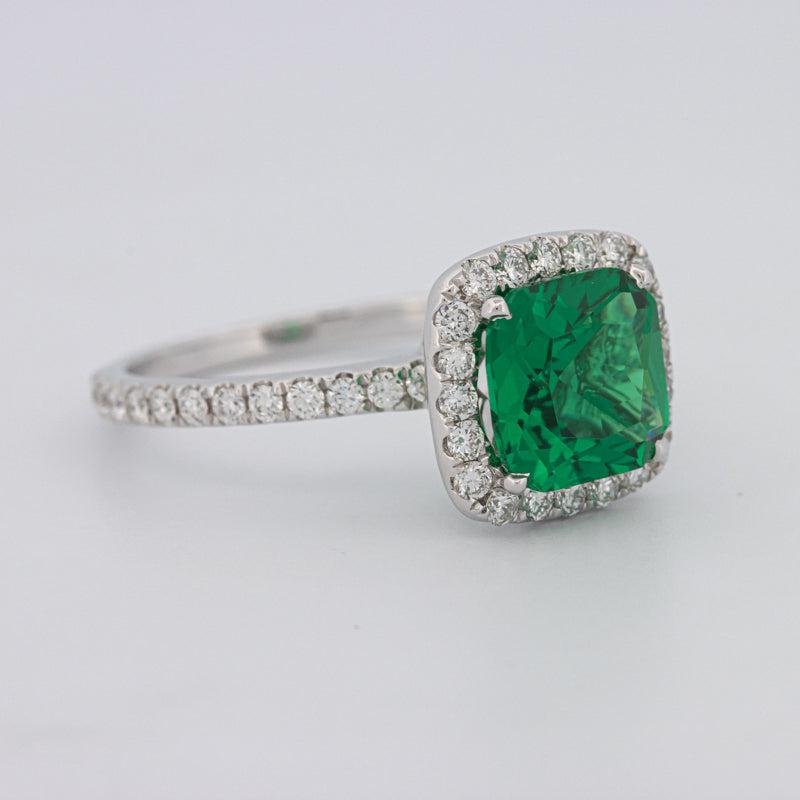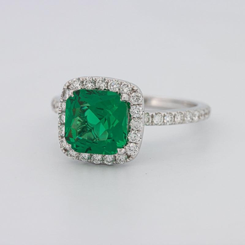 2 CT Square Radiant Halo Green Emerald Ring - ZIZOV DIAMONDS