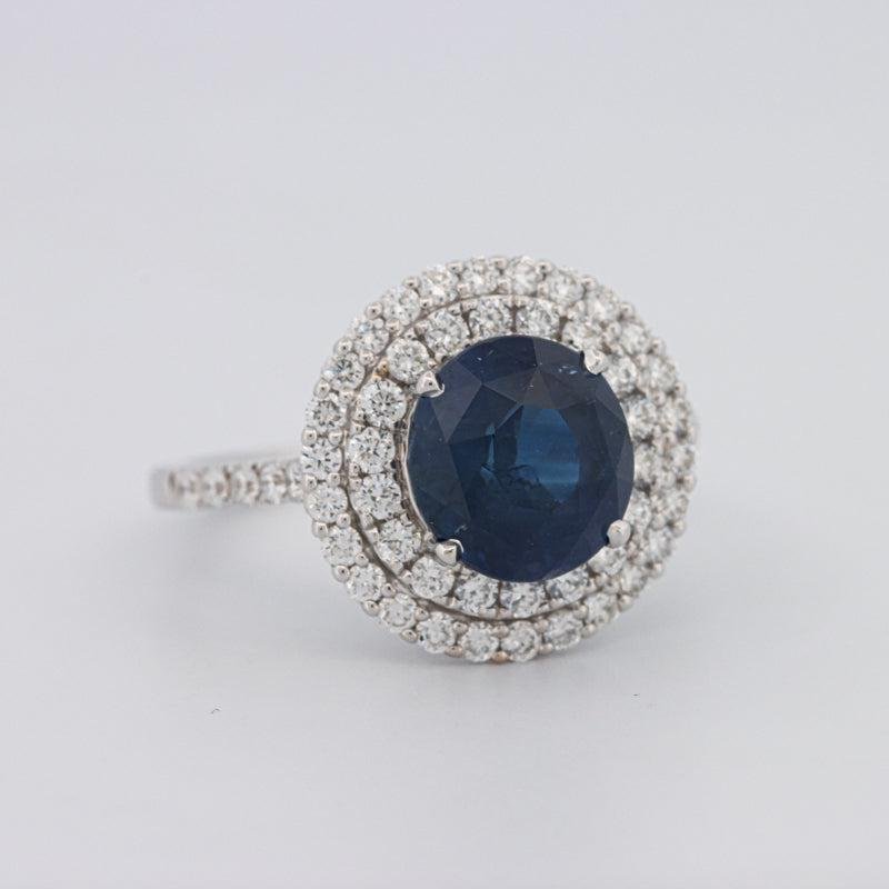 4.14 CT Round Blue Sapphire Pave Ring - ZIZOV DIAMONDS