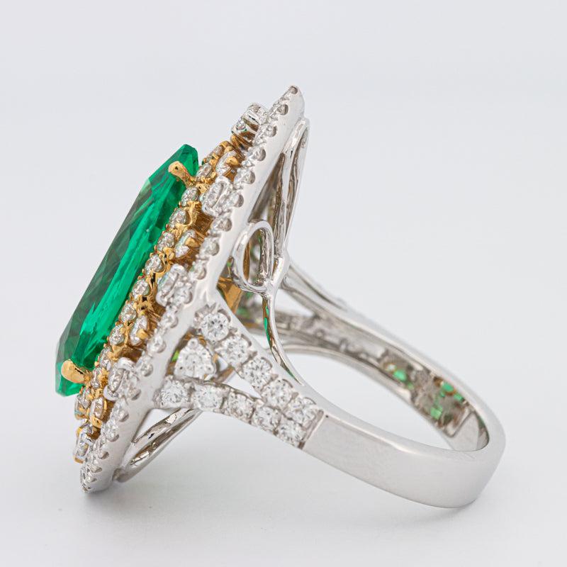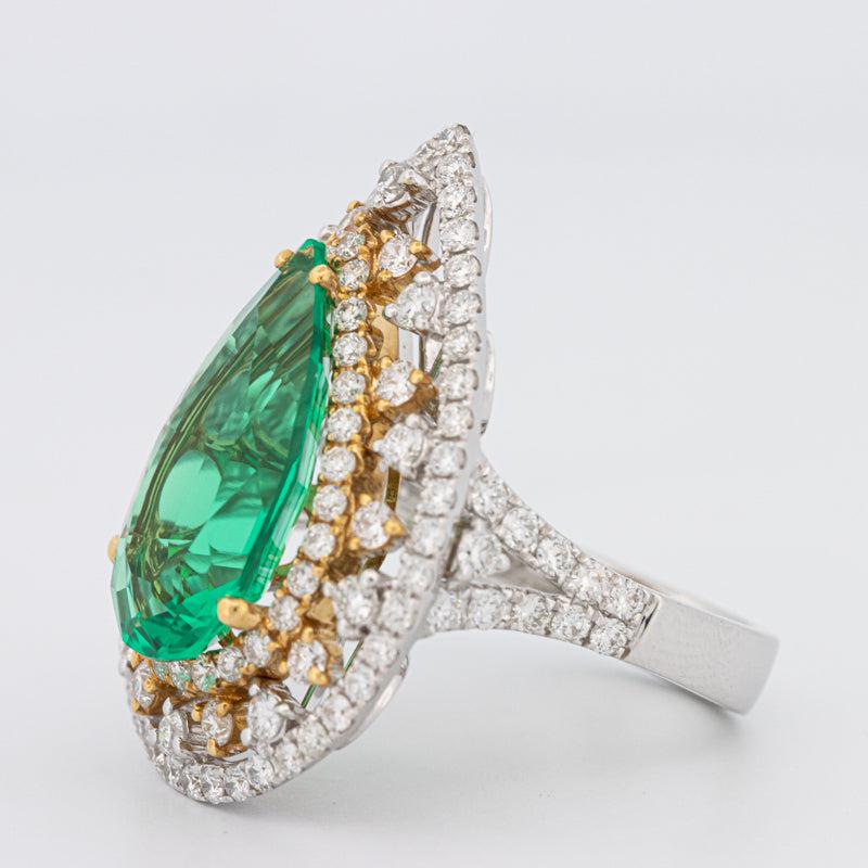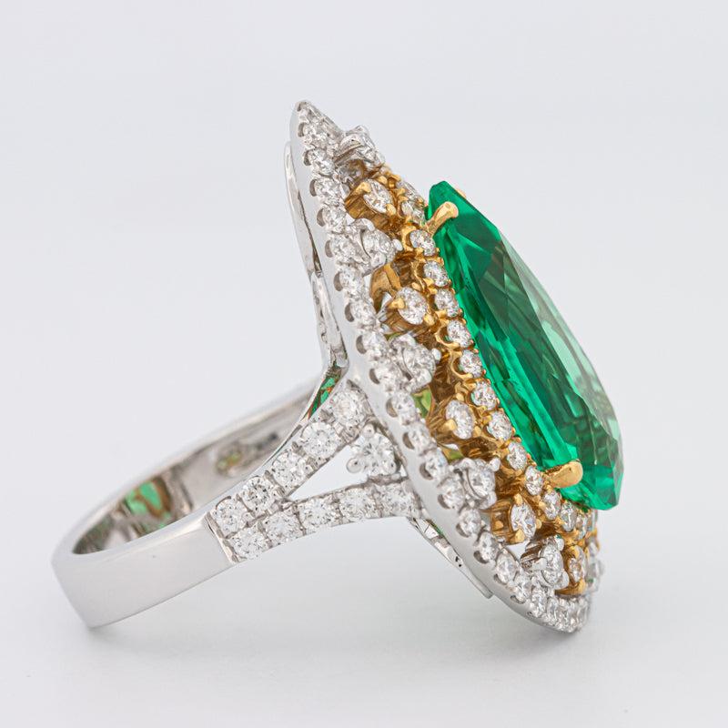 6.89 CT Double Halo Pearshape Green Emerald Ring
