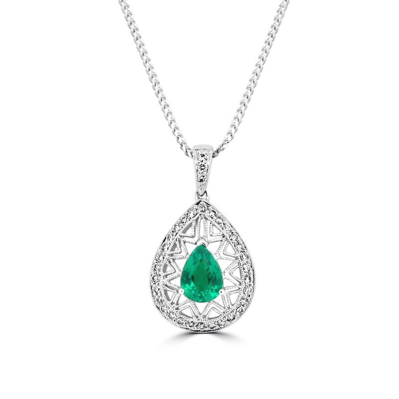 | Zentraler Edelstein: | Rekristallisierter Smaragd, Birne, 1.10 ct |