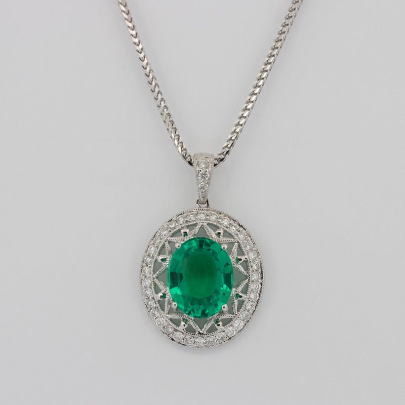 | Zentraler Edelstein: | Rekristallisierter Smaragd, Oval, 3.70 ct |