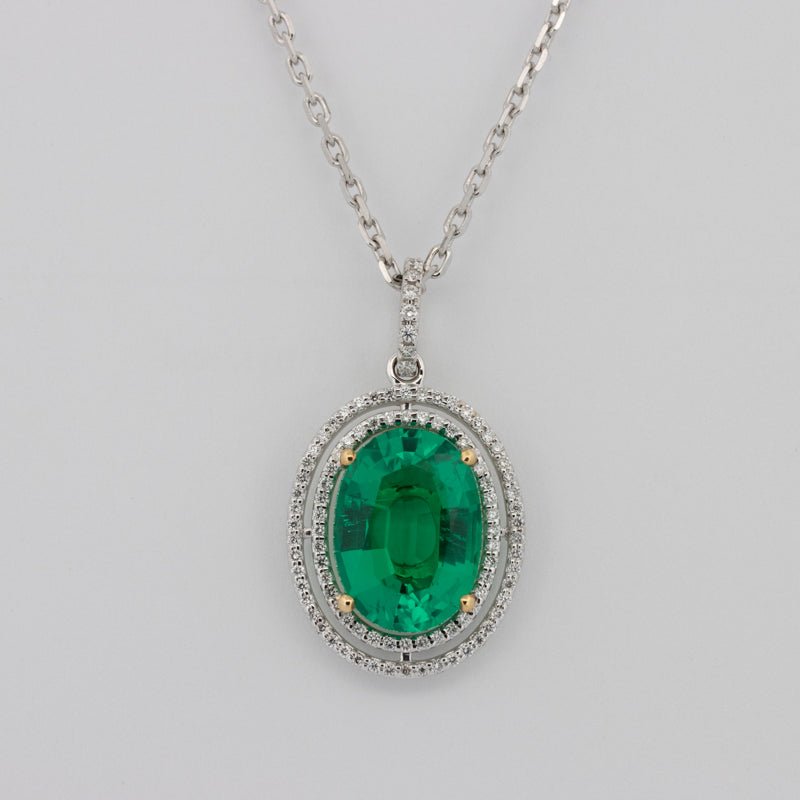 | Zentraler Edelstein: | Rekristallisierter Smaragd, Oval, 5.01 ct |
