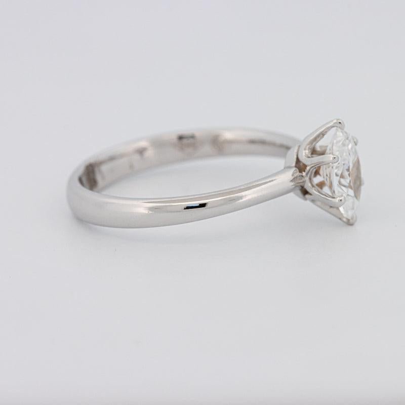 In 18K Weißgold gefasst, verstärkt der minimalistische Solitaire die Symmetrie des Steins für zeitlose Anziehungskraft.