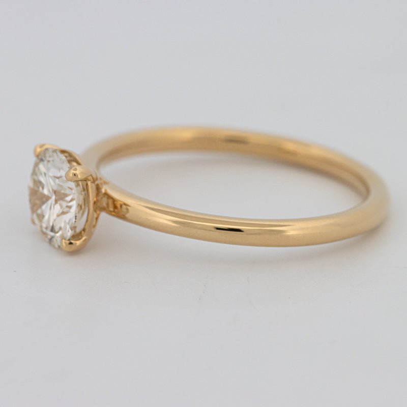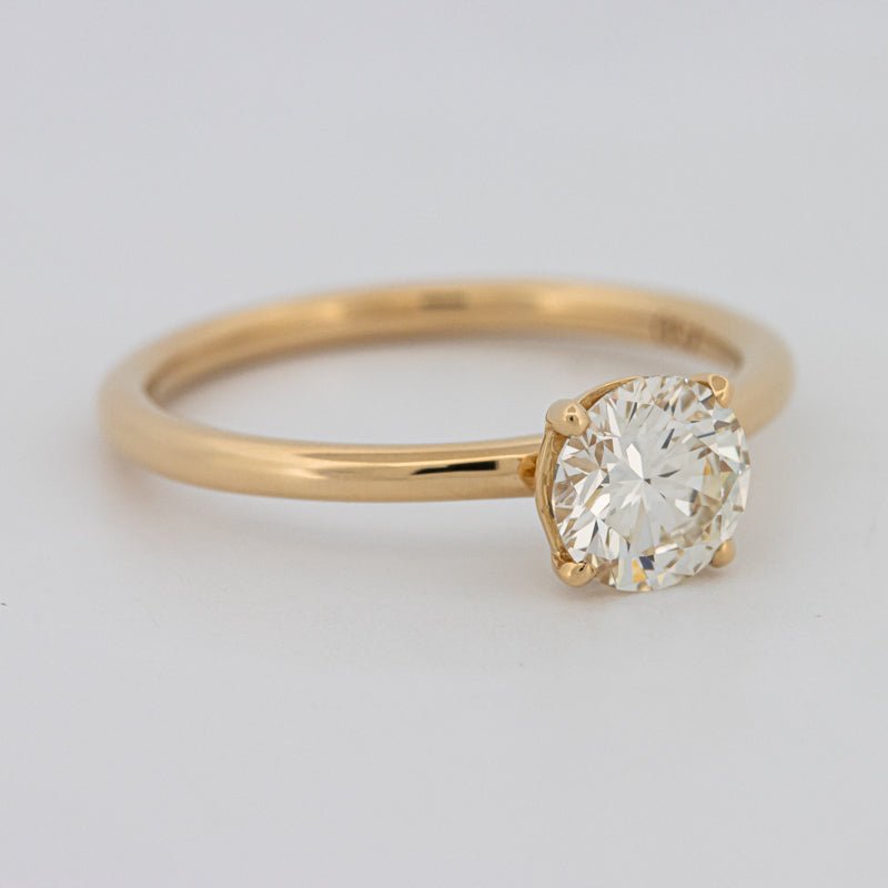 Ein HRD-zertifizierter 0,85 ct Round Brilliant in L-Farbe und VVS1-Reinheit bietet außergewöhnliche Transparenz mit einem warmen Farbton, der sich wunderschön mit Gelbgold verbindet.