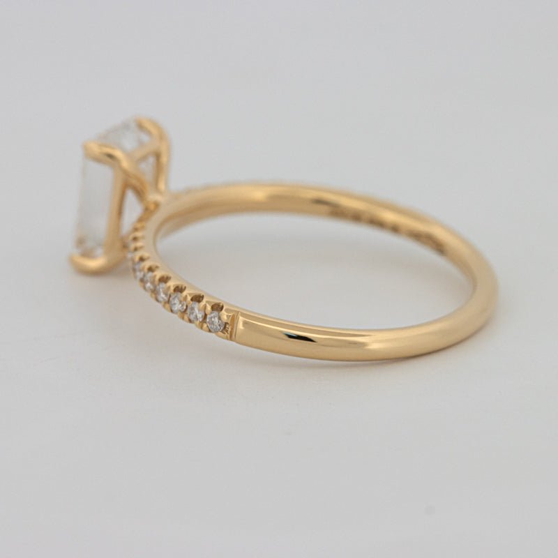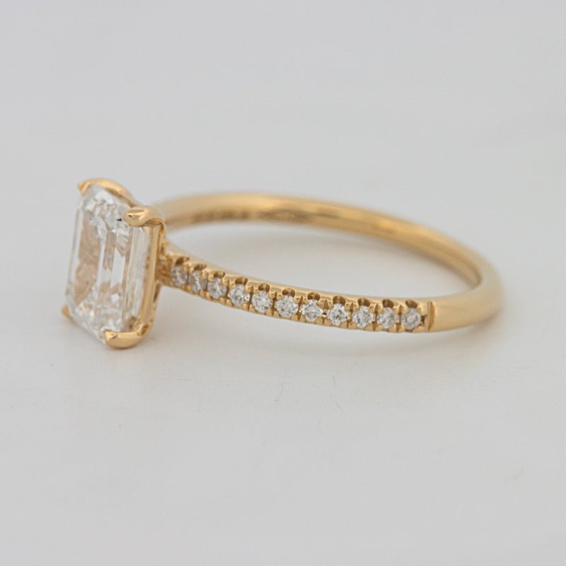 Der Emerald Cut Pavé Solitaire (Lab Grown) Ring präsentiert einen 1.50 ct IGI-zertifizierten lab grown (CVD) Emerald Cut Diamanten in E–F Farbe und VS1–VS2 Reinheit, der anmutige Eleganz und zeitlose Schönheit ausstrahlt.