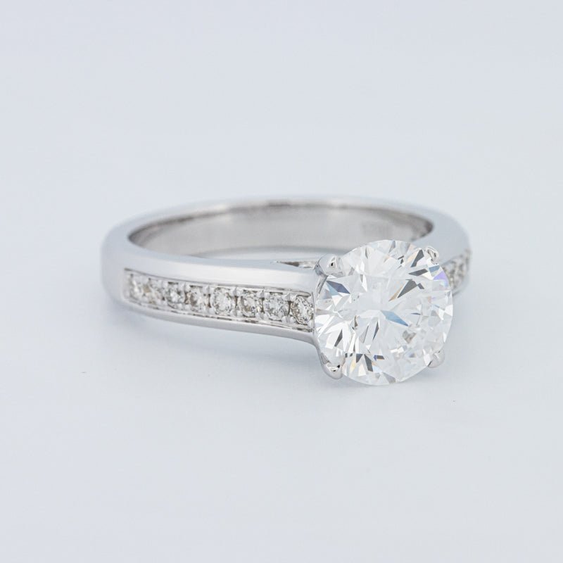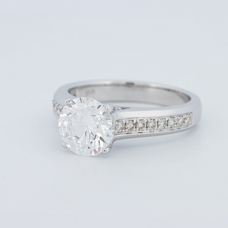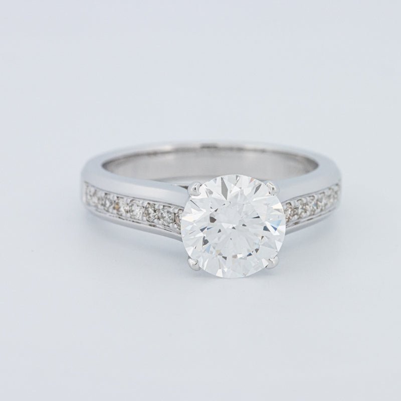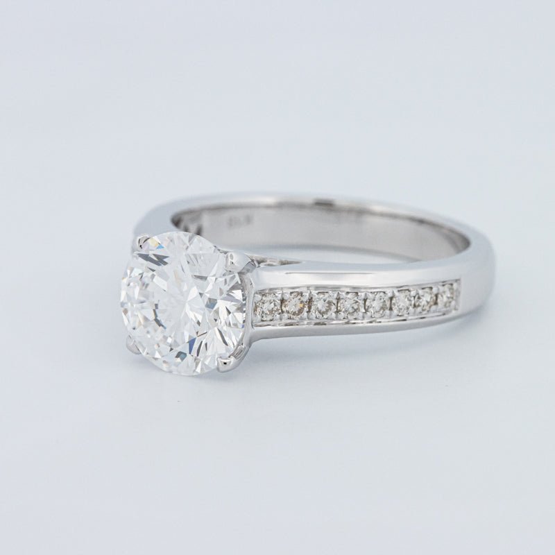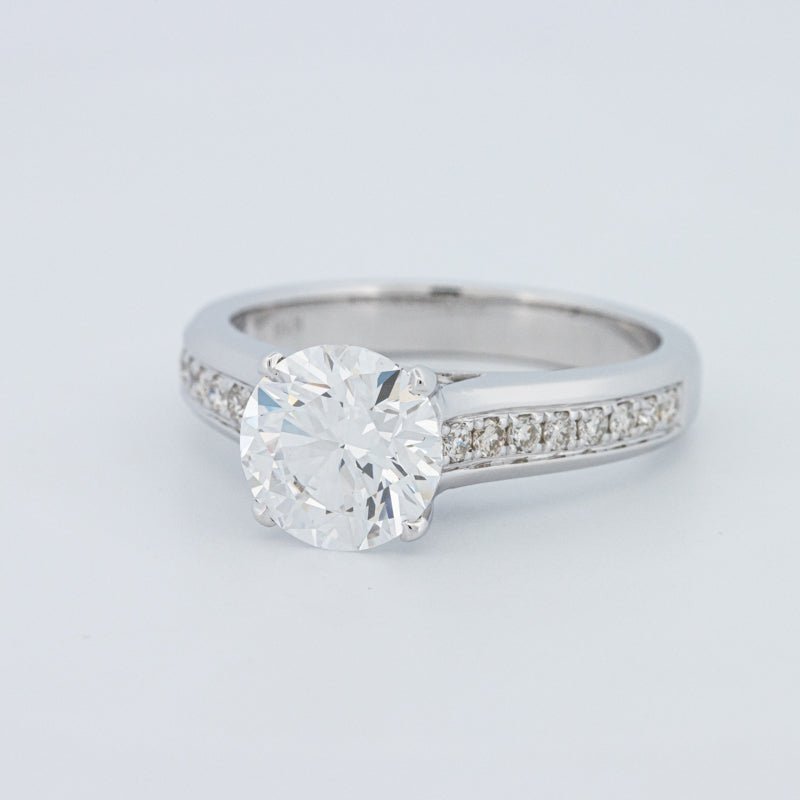 Ein beeindruckender 2,00 ct D/VS1 lab‑grown runder Brillant verankert diesen Pavé Solitär und bietet eine starke Präsenz mit klarem, farblosem Feuer.