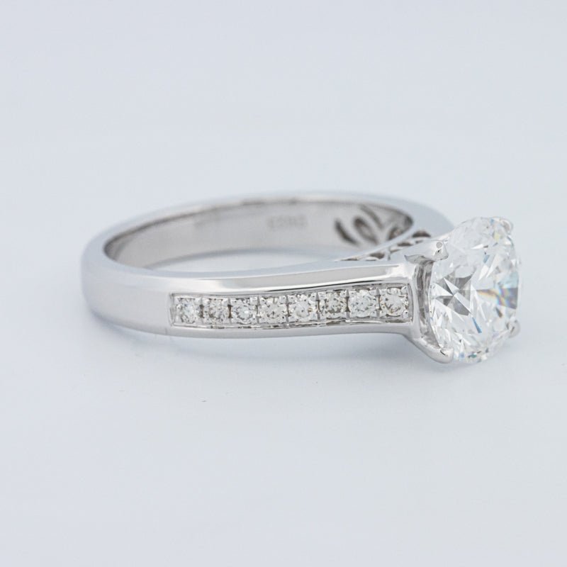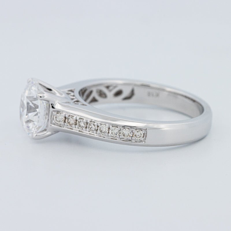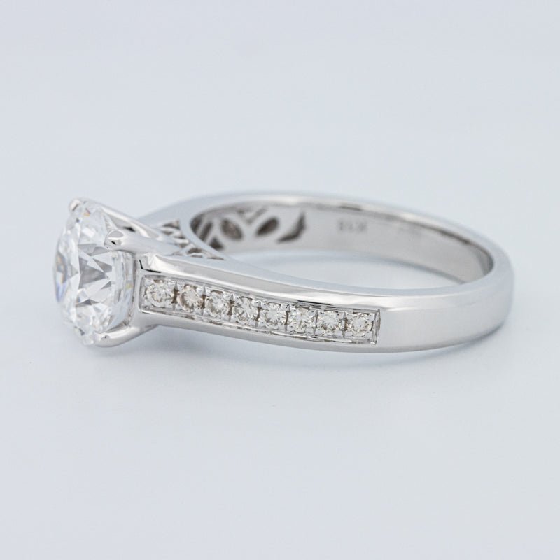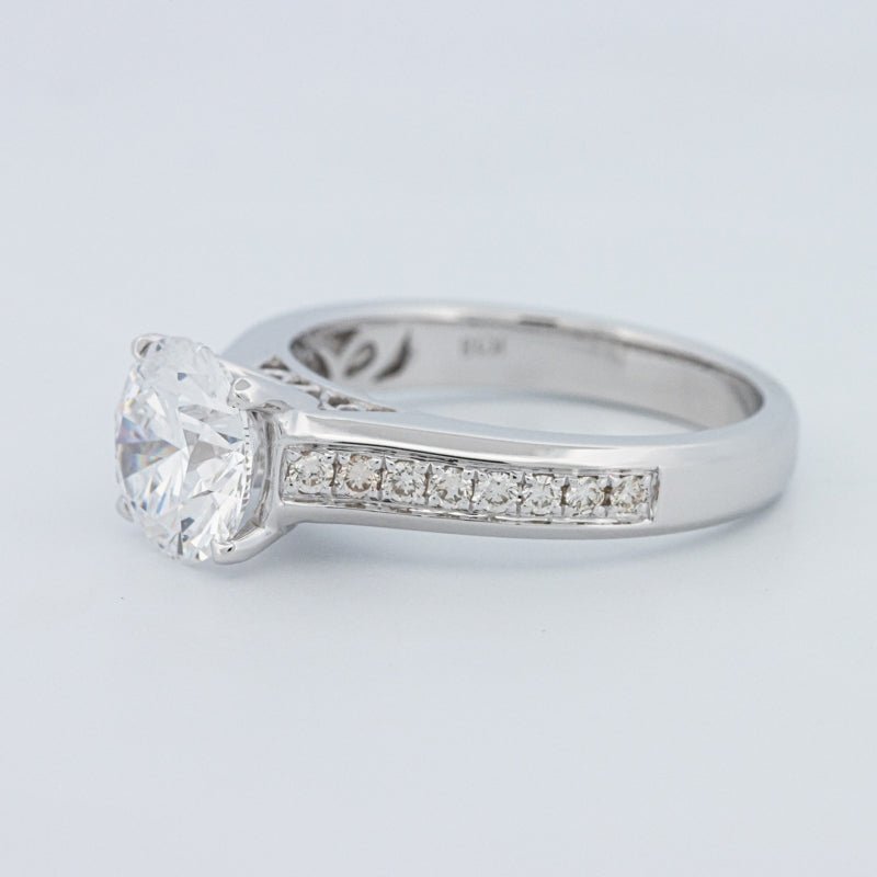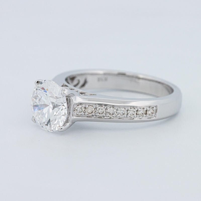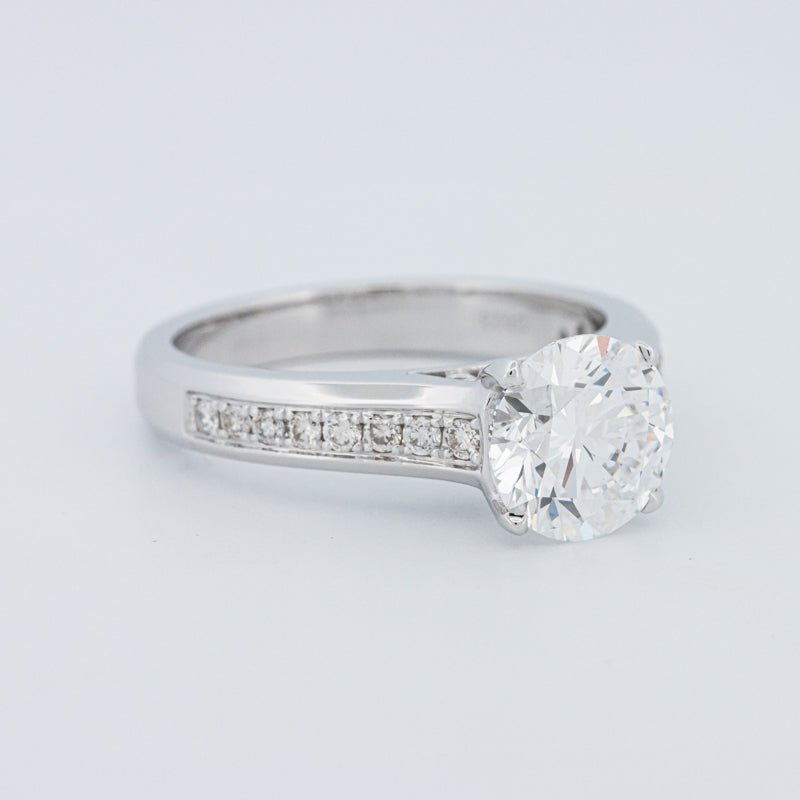 Ein beeindruckender 2,00 ct D/VS1 lab‑grown runder Brillant verankert diesen Pavé Solitär und bietet eine starke Präsenz mit klarem, farblosem Feuer.