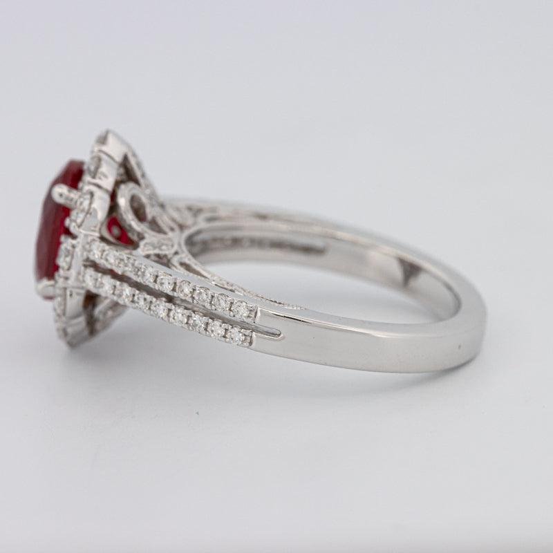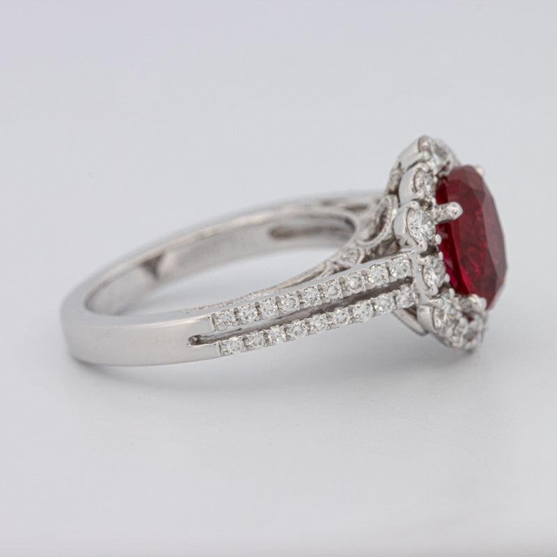 Rekristallisierter Rubin • Natürlicher Diamant-Halo • 18K Weißgold