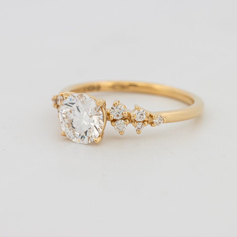 Ein strahlender E–F/VS lab‑grown Mittelpunkt trifft auf raffinierte natürliche Akzente und bietet ein ausgewogenes Funkeln und ein sauberes, modernes Profil.