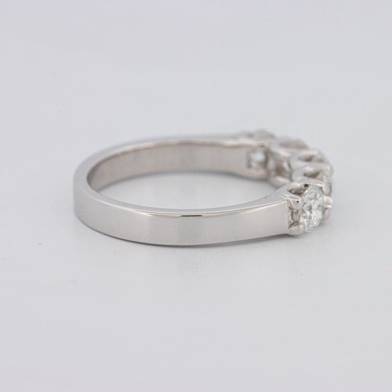 Fünf F/VS runde Diamanten mit insgesamt 1,00 ct schweben nahtlos über das Band für kontinuierliches Funkeln und raffinierte Symmetrie.