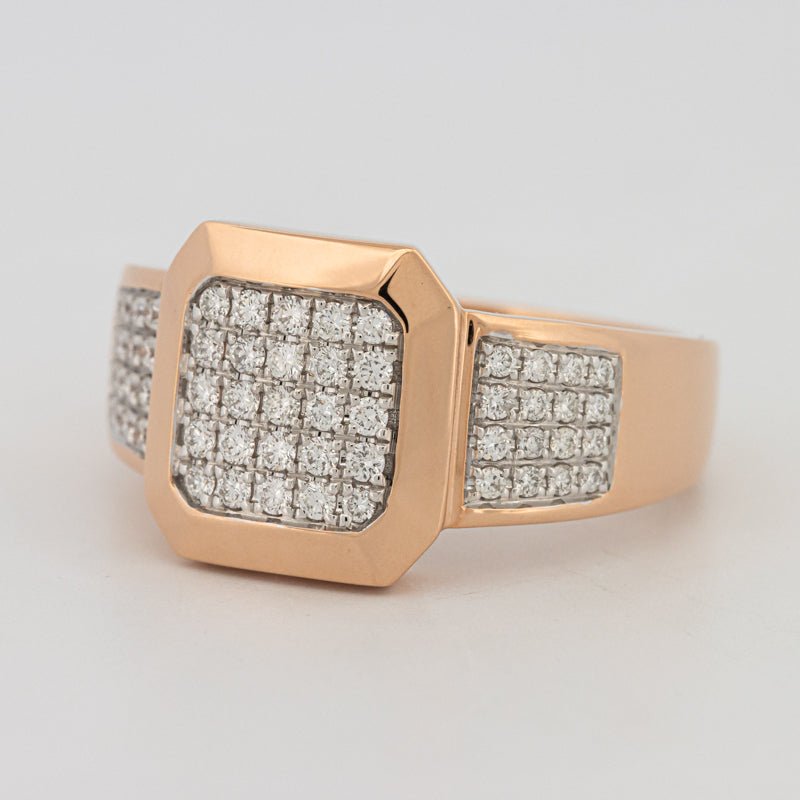 Ein markantes 18K Roségoldband verankert 0,70 ct natürliche Diamanten und verleiht eine selbstbewusste Präsenz mit raffinierter Zurückhaltung.