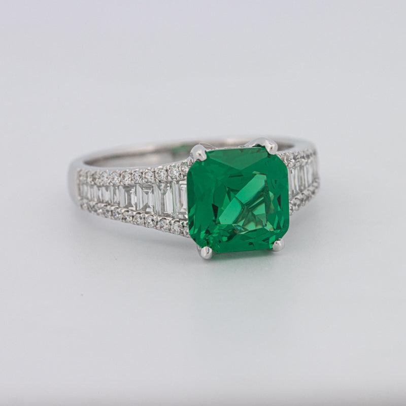 | Zentraler Edelstein: | Quadratischer Radiant Grüner Smaragd, 2,02 ct (rekristallisiert) |