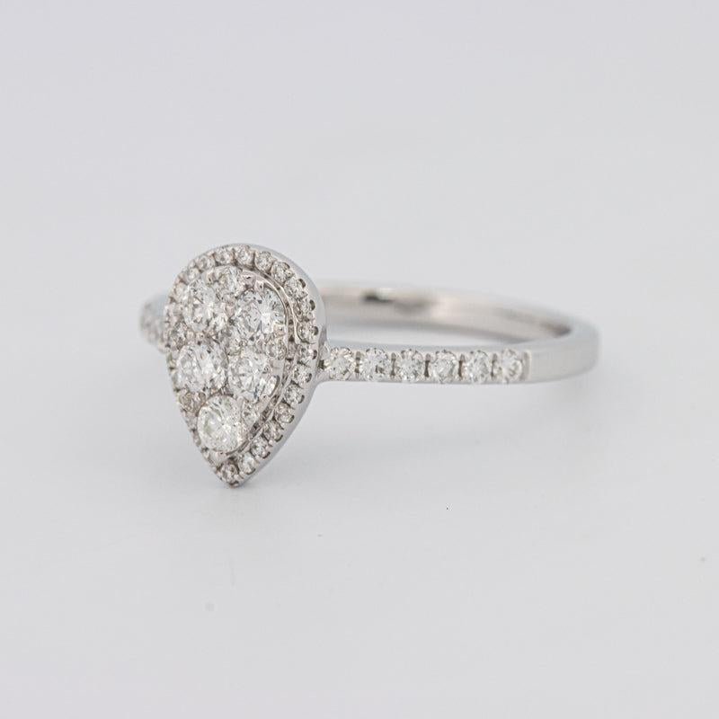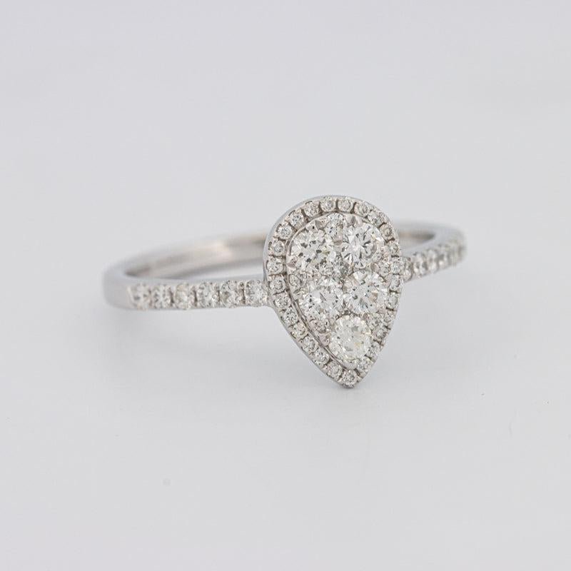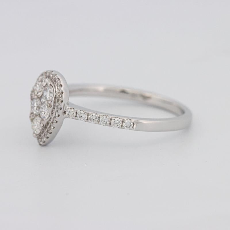 Unsichtbar gefasstes Birnenprofil • 0,61 ct Gesamt — F / VS • 18K Weißgold