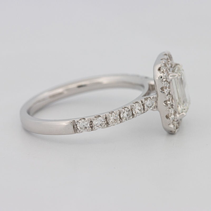Der Emerald Cut Halo Solitaire Ring zentriert einen 0.70 ct GIA-zertifizierten Emerald Cut in G-Farbe und VS2-Reinheit, der klare Stufenschliff-Eleganz mit dauerhafter Anmut bietet.