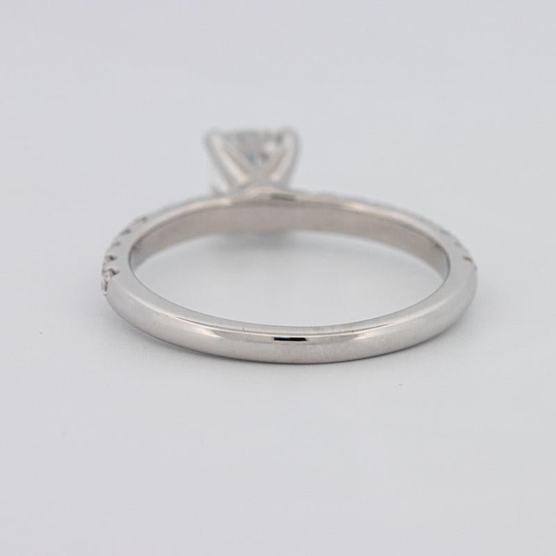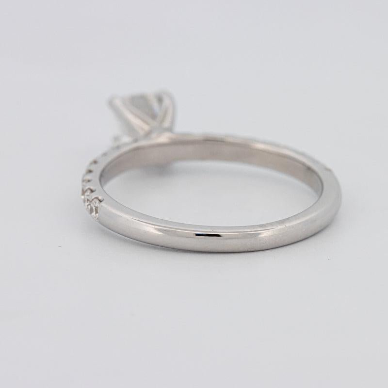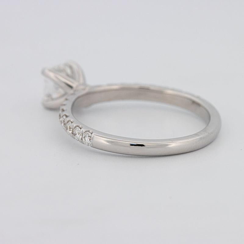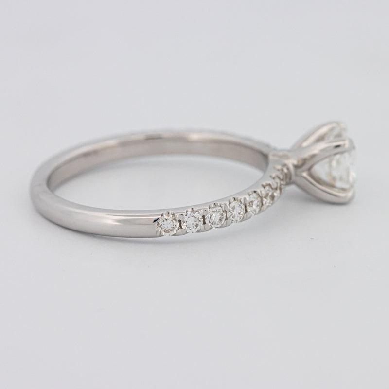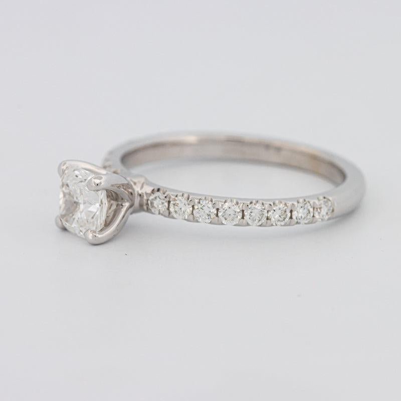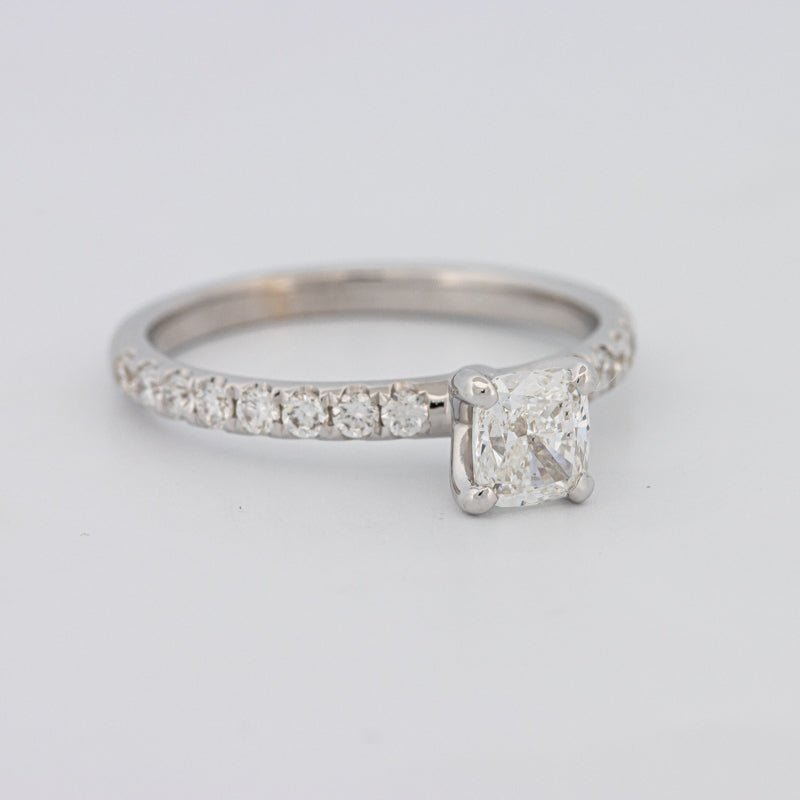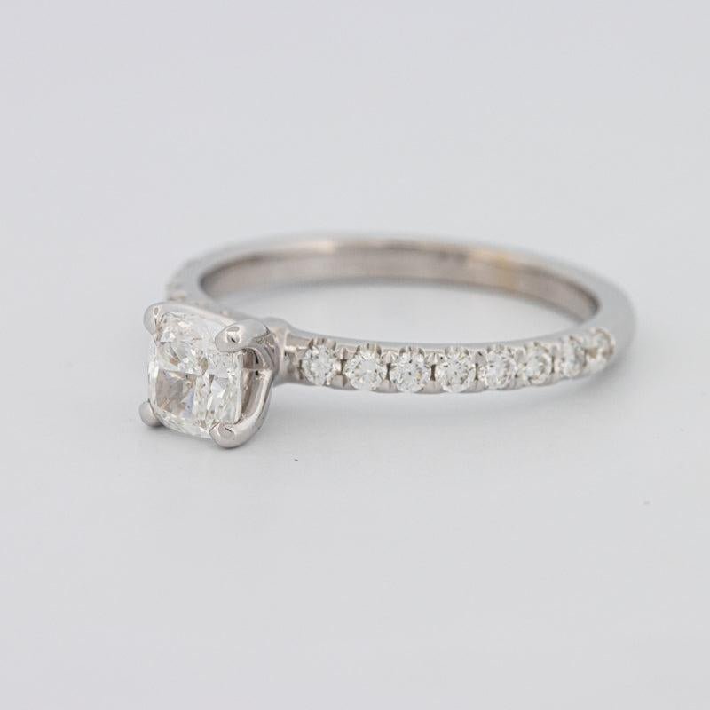 Un corte cojín de 0.70 ct G/SI1 certificado por GIA ofrece un brillo suave y romántico en un perfil solitario refinado.