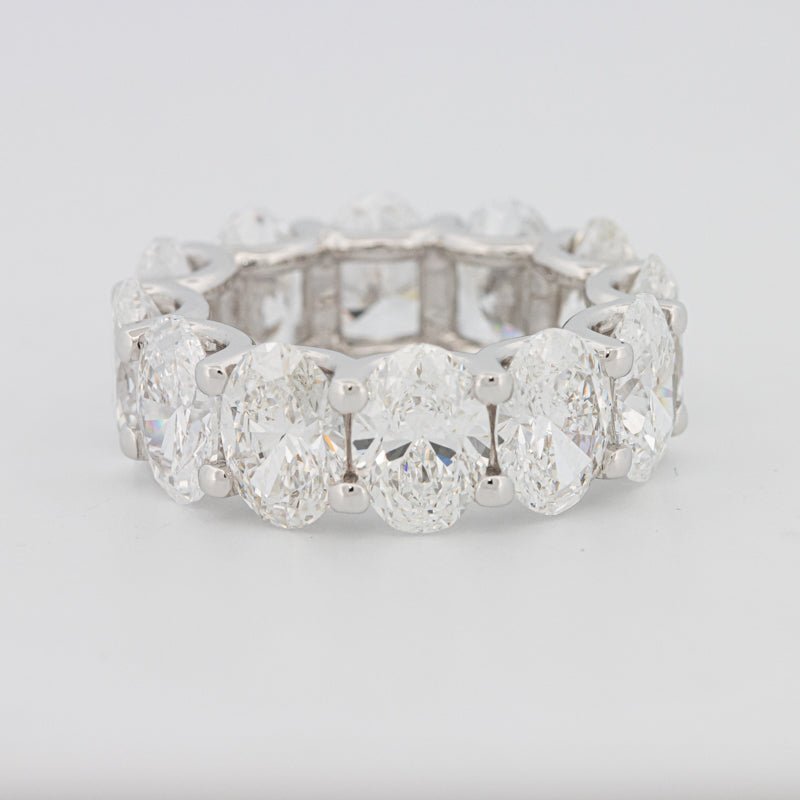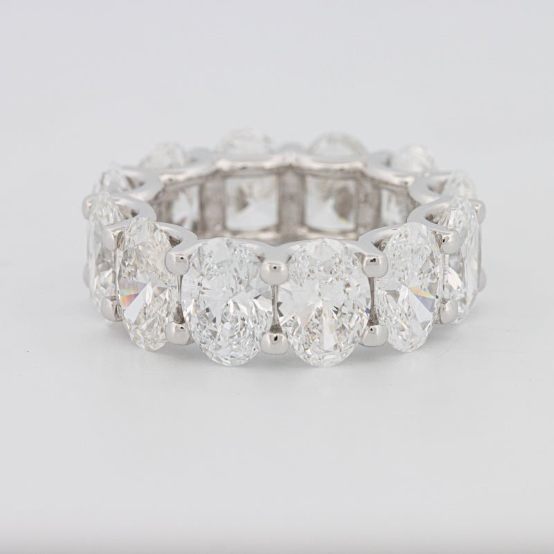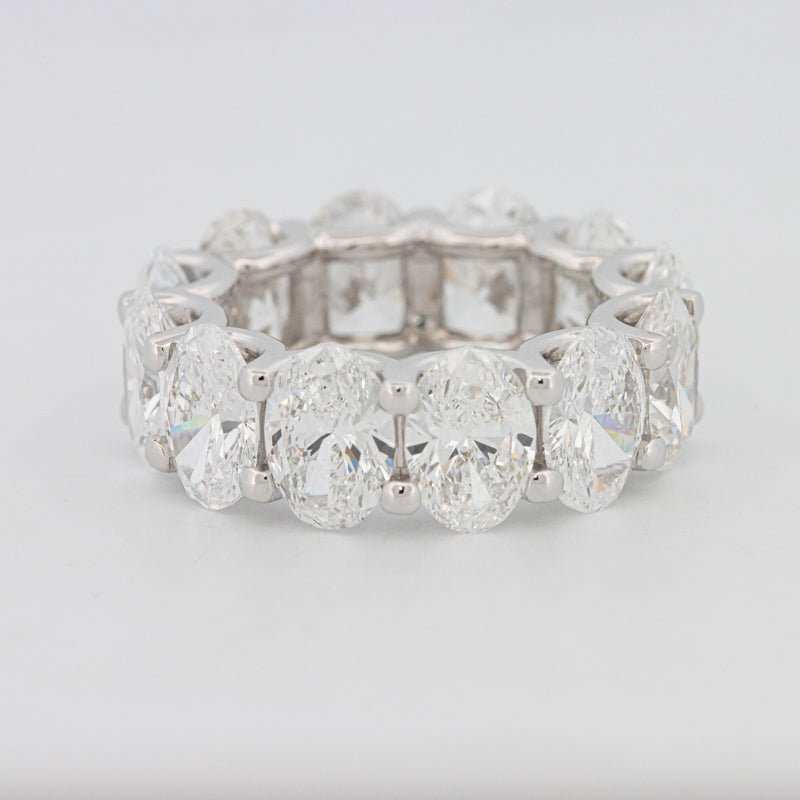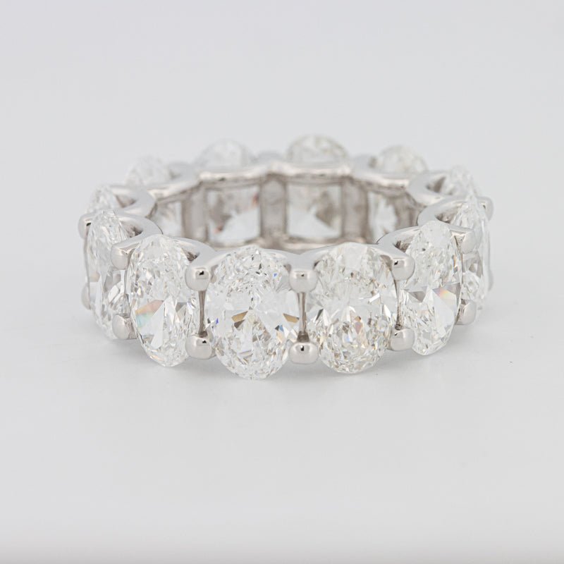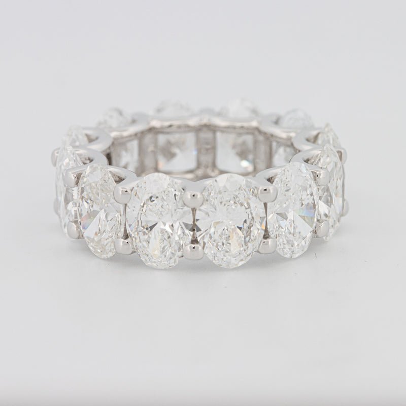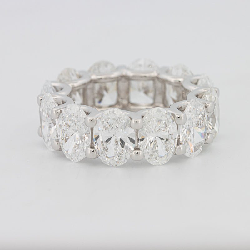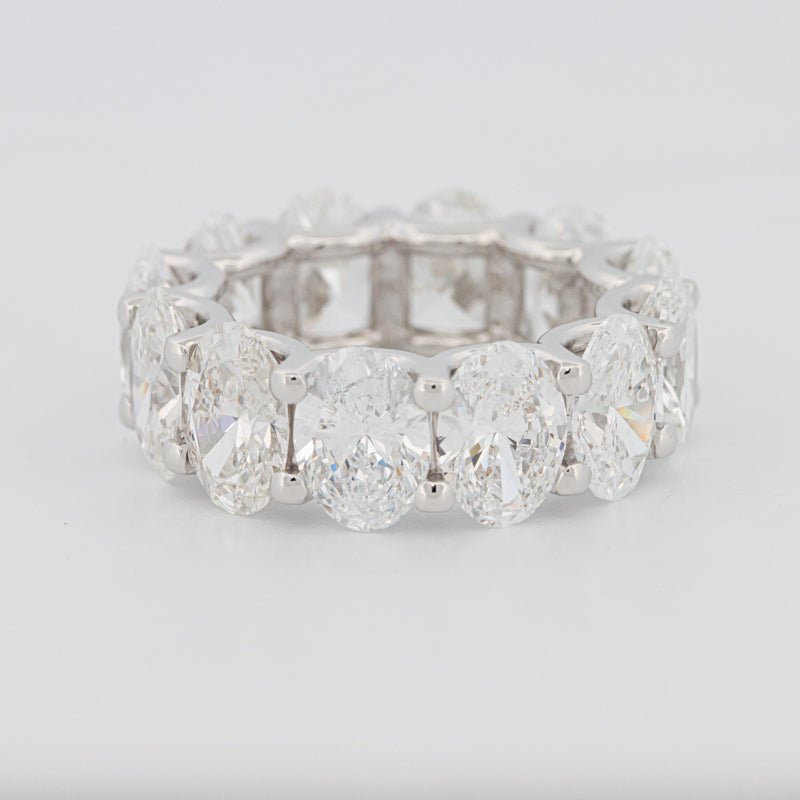 Un círculo perfecto de óvalos lab grown de color F/G y claridad VS que suman 12.00 ct ofrece un brillo ininterrumpido y una silueta audaz y moderna.