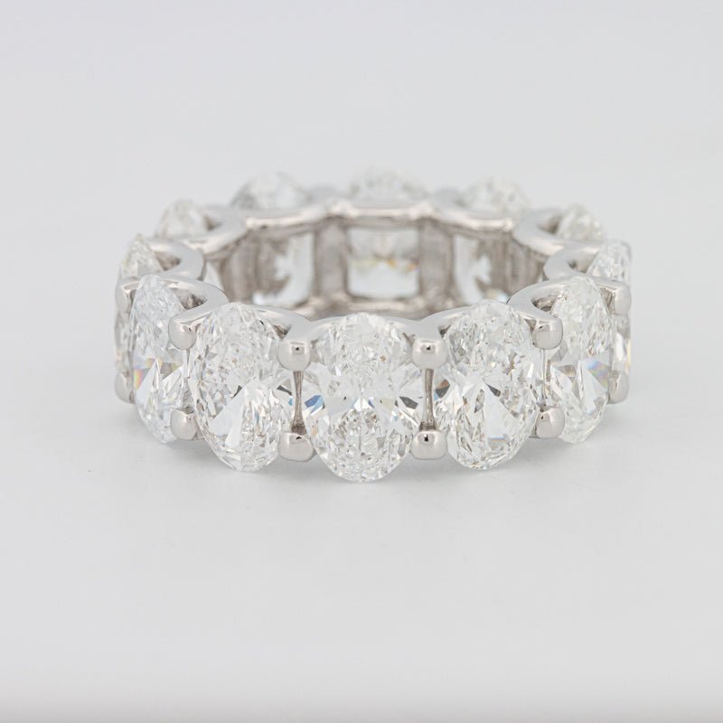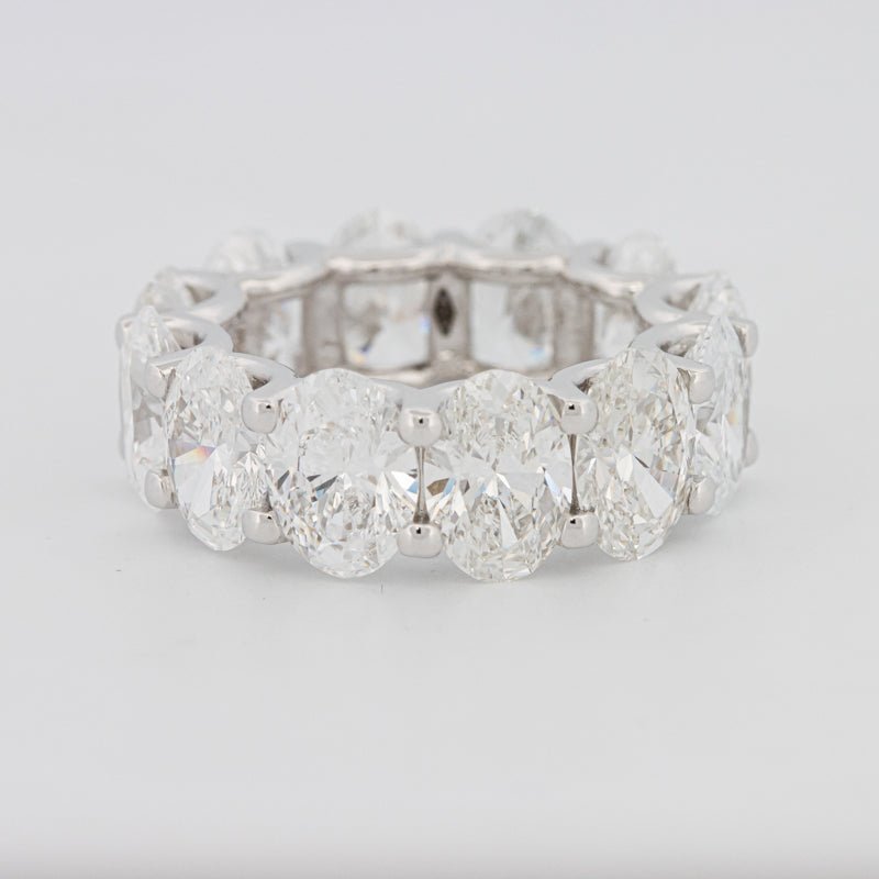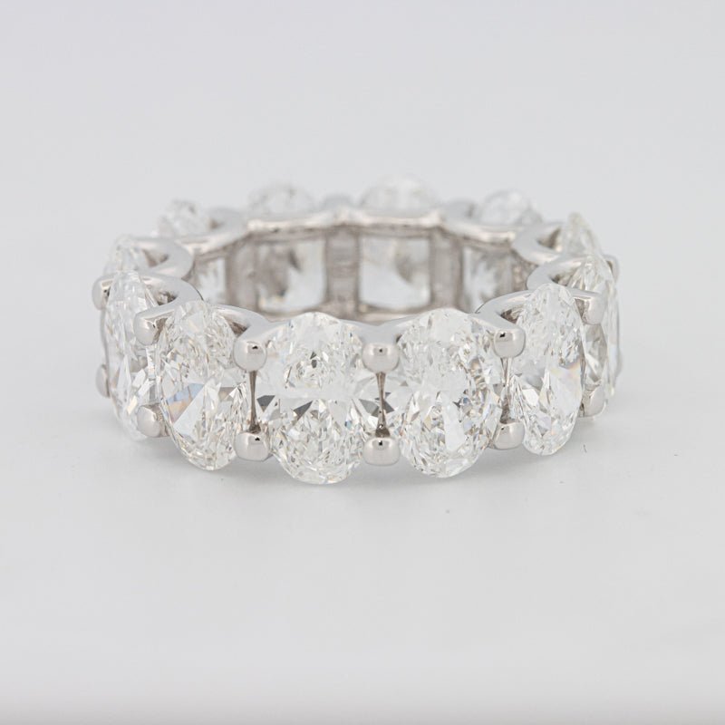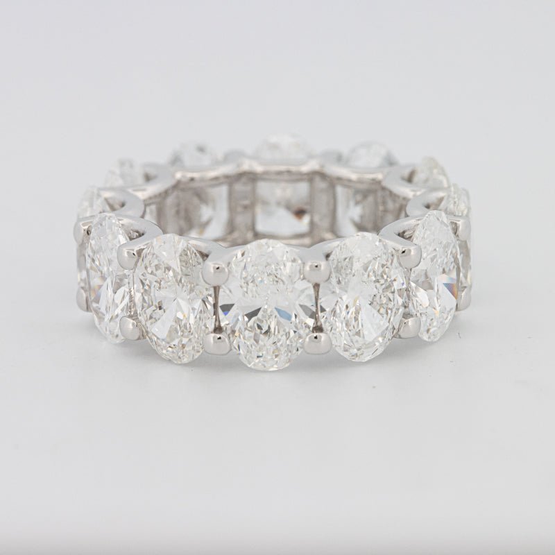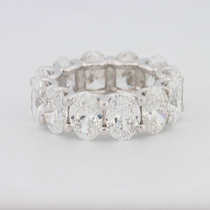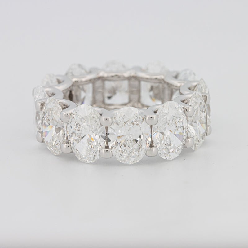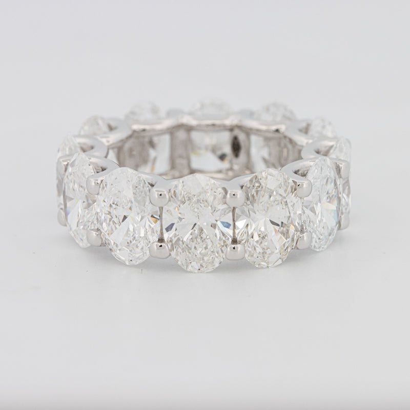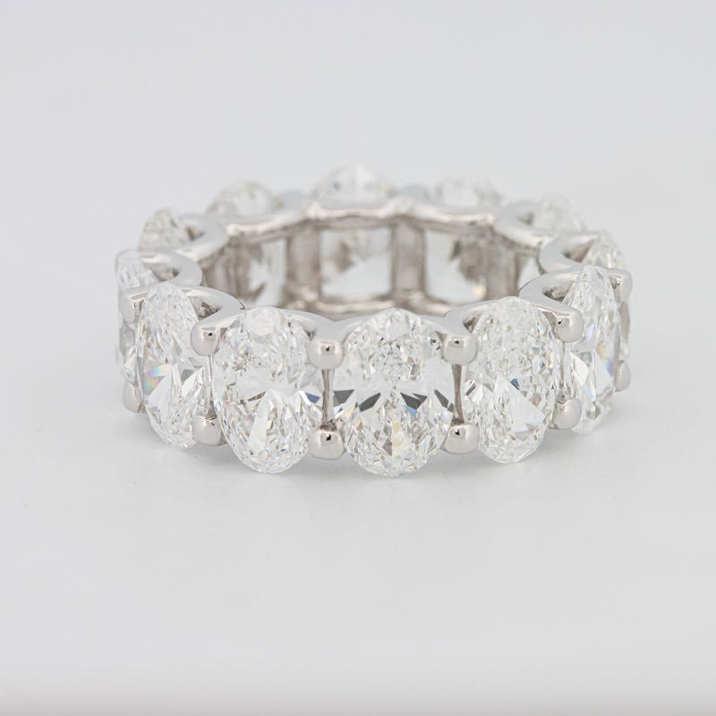 Un círculo perfecto de óvalos lab grown de color F/G y claridad VS que suman 12.00 ct ofrece un brillo ininterrumpido y una silueta audaz y moderna.