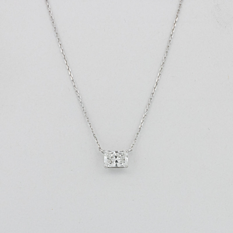 El colgante “Classic Radiant” presenta un diamante lab‑grown radiant cut de 1.07 ct D/VVS2, celebrado por su brillo y simetría refinada.
