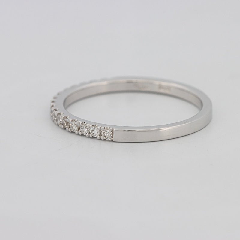 Elaborado en ligero oro blanco de 18K (1.60g), es un clásico elegante de aniversario diseñado para la comodidad diaria.