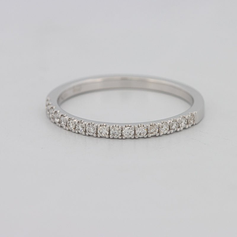 Un perfil delgado de 1.70 mm con 0.30 ct de diamantes F/VS ofrece un brillo refinado y un potencial de apilamiento sin esfuerzo.