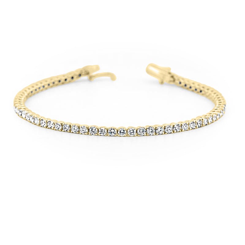 Esta pulsera de tenis clásica presenta 52 diamantes redondos emparejados a mano con un total de 6.00 quilates, elegidos por su color F–G luminoso y claridad VS viva.