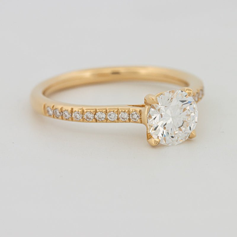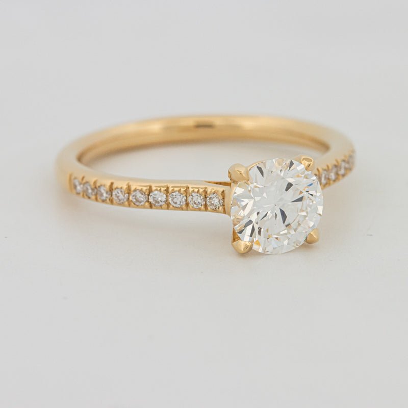 Certificado IGI • Lab‑Grown Redondo 1.09 ct — D / VS1 • Pavé Natural 0.50 ct — F / VS • Oro Amarillo de 18K • 3.00g