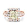 Amalia presenta un centro de 3.17 ct lab grown corte cojín certificado por HRD en color K y claridad VVS2, ofreciendo un brillo distintivo y romántico con una pureza excepcional.