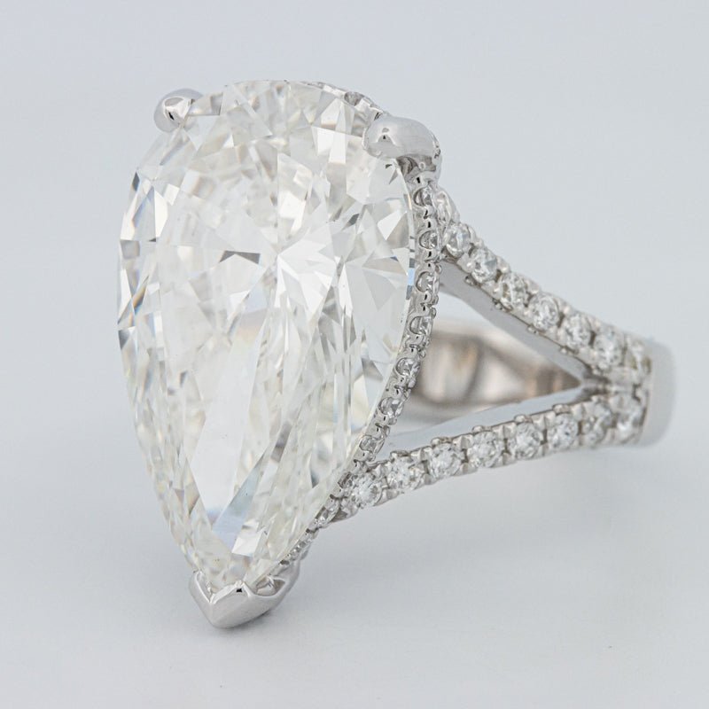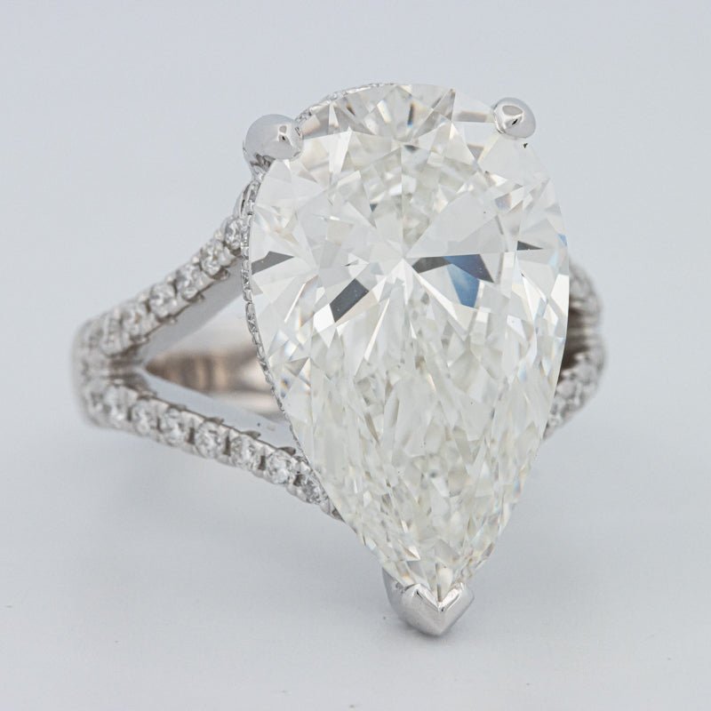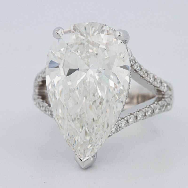 Un impresionante diamante de laboratorio en forma de pera de 10.03 ct F/VS1 domina el engaste “Gaia”, ofreciendo un brillo alargado de alto blanco y una elegante silueta de lágrima.