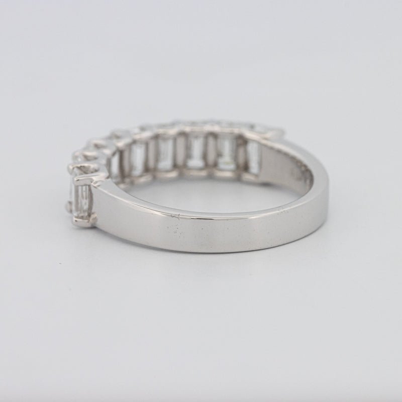 Neuf diamants taille émeraude F/VS totalisant 1,65 ct créent des éclats miroirs élégants et une symétrie raffinée.
