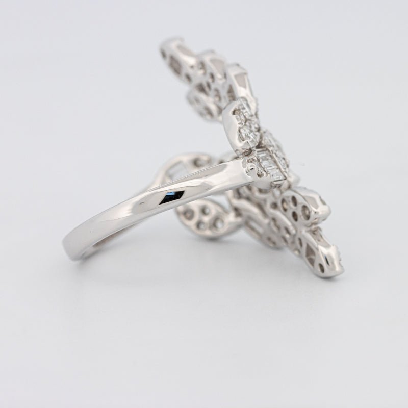 Deux silhouettes inspirées de la marquise forment une mosaïque invisible sans couture, offrant une symétrie audacieuse et un éclat raffiné en qualité F/VS.