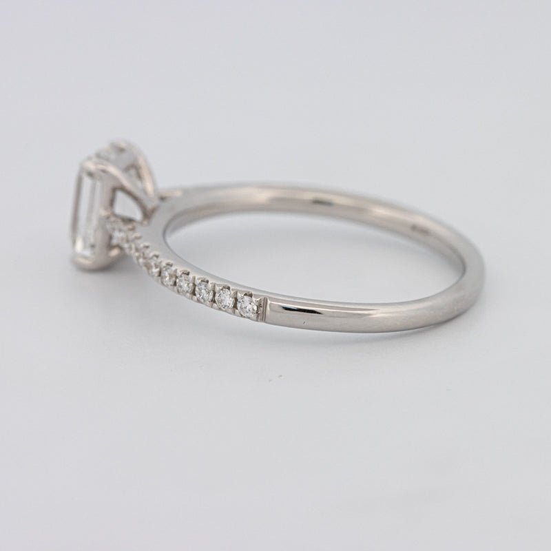 Un diamant taille émeraude de 1.01 ct E/SI2 certifié GIA met en valeur une géométrie à taille en escalier nette, rehaussée par une bande pavé raffinée.