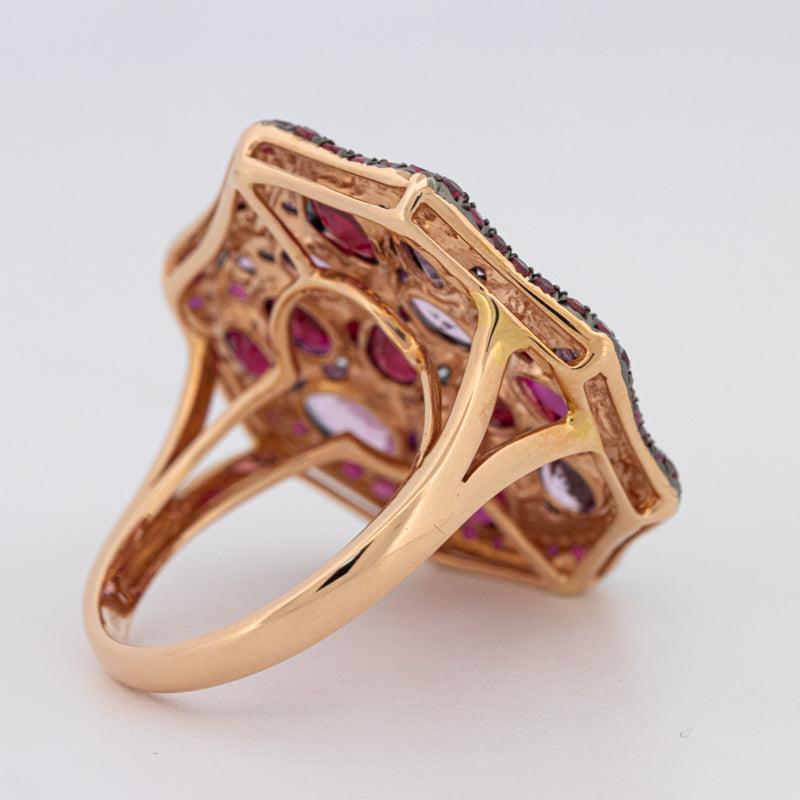 Conçue en or rose 18K substantiel (8.50g), cette bague d'exception allie des teintes audacieuses à des détails raffinés pour une présence inégalable.