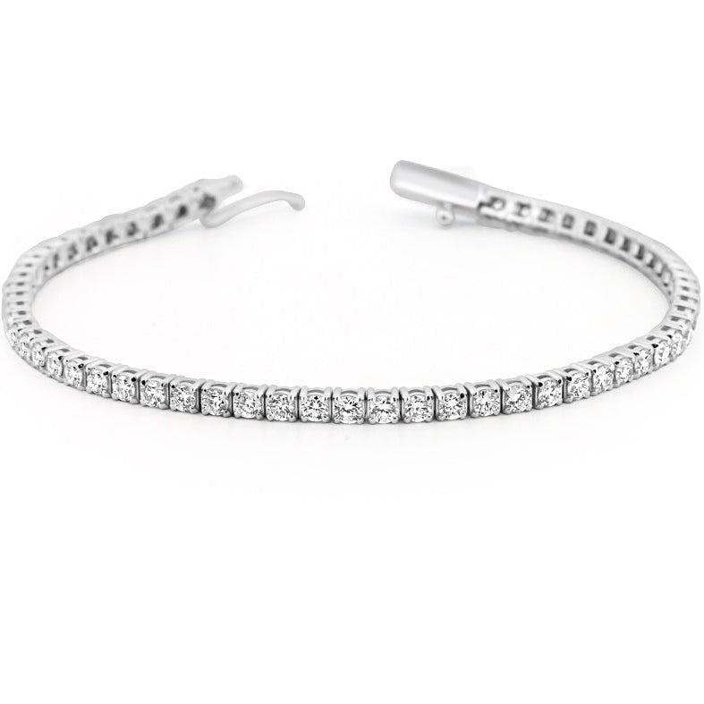Un bracelet tennis raffiné en or blanc 18K (9g), serti de 3,55 ct de diamants ronds brillants de laboratoire de couleur glacée D–E et de pureté VVS impeccable pour un éclat continu et blanc intense.