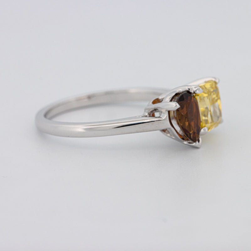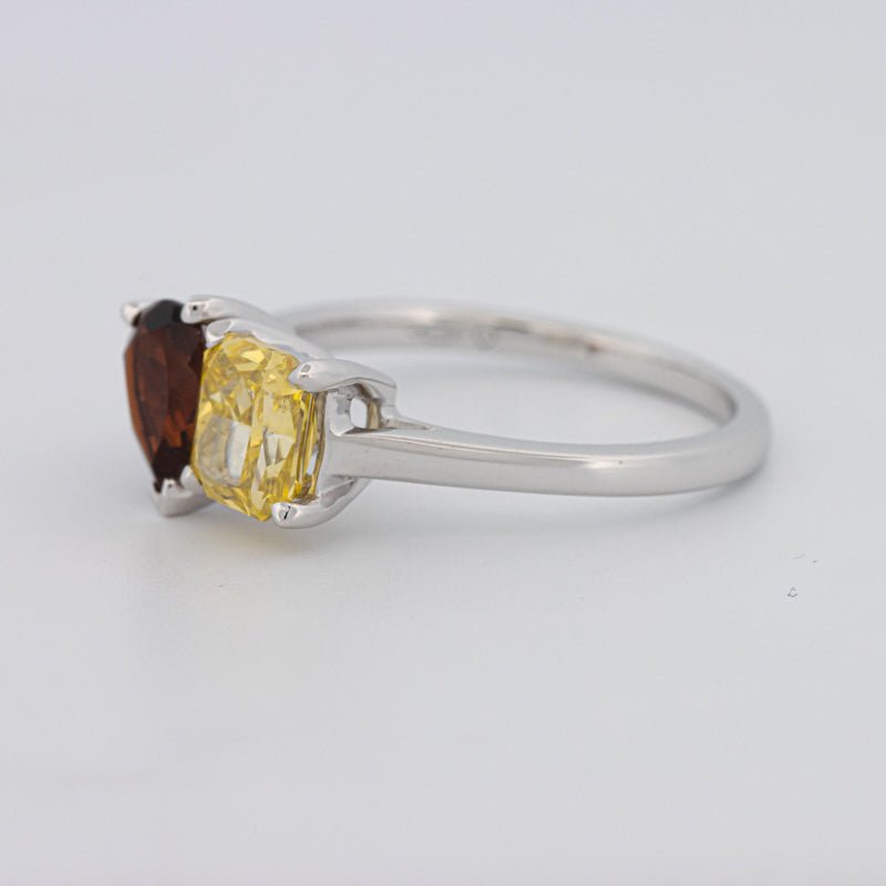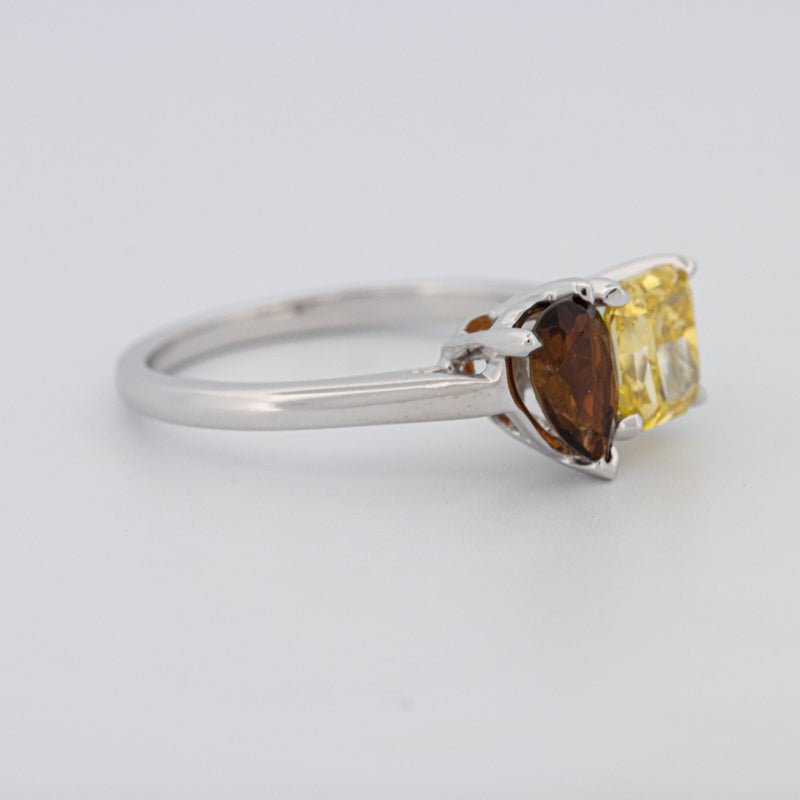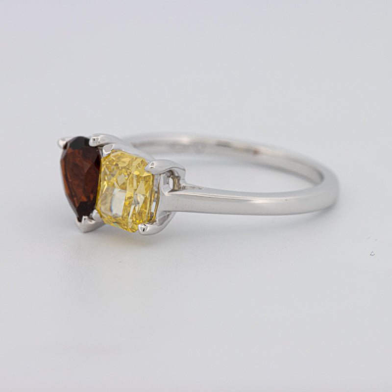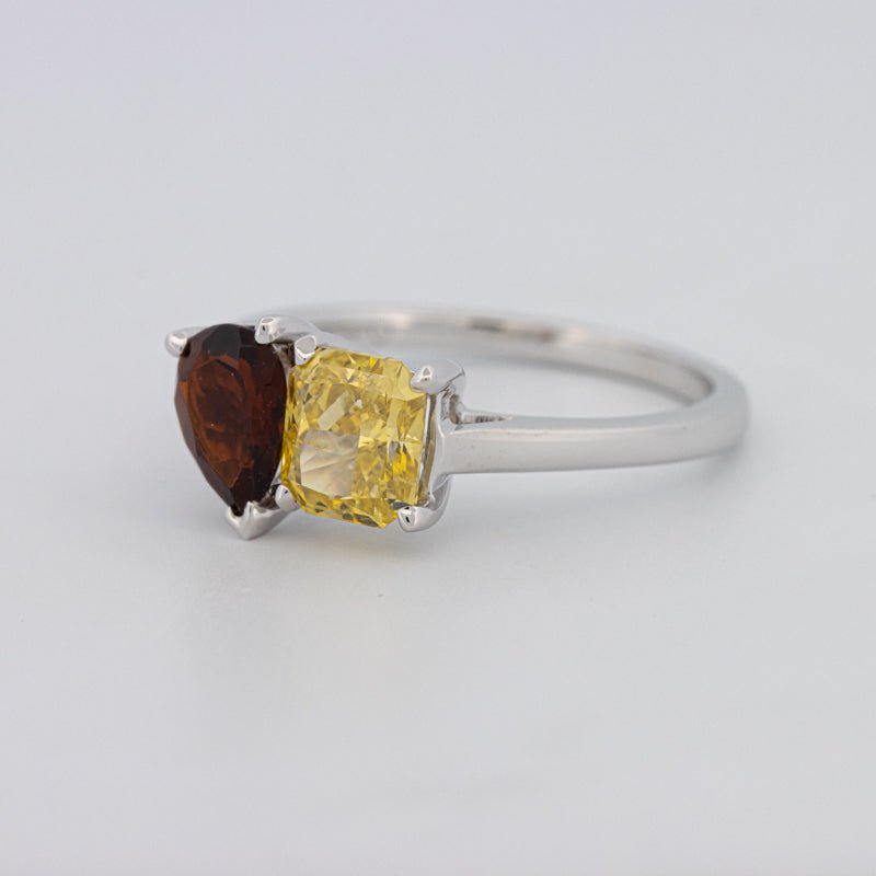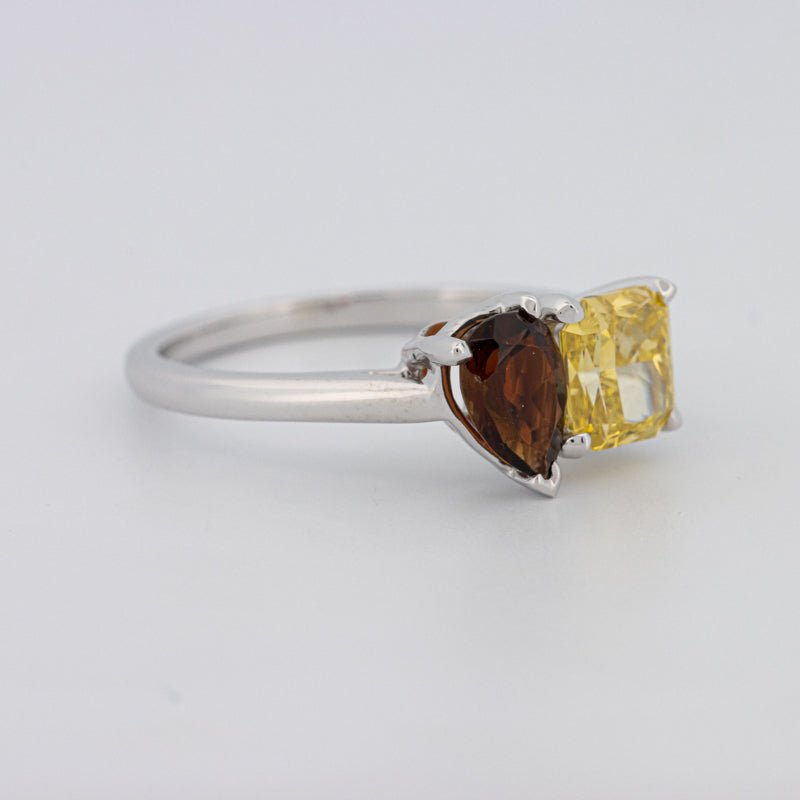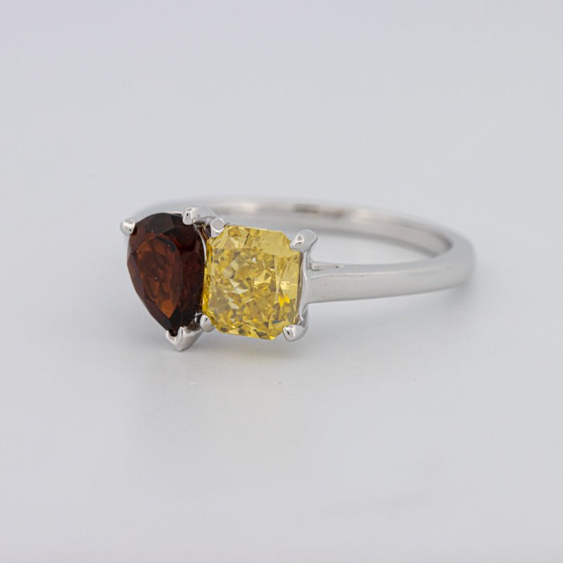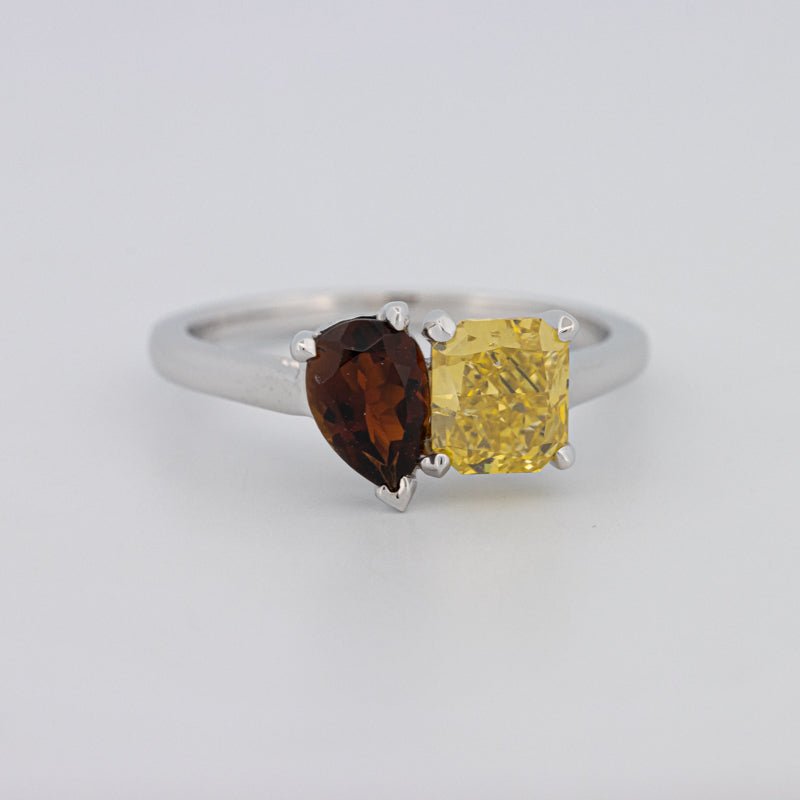 Pierres Centrales : Diamant Jaune Carré Radiant, 1.00 ct • Tourmaline Poire, 0.58 ct