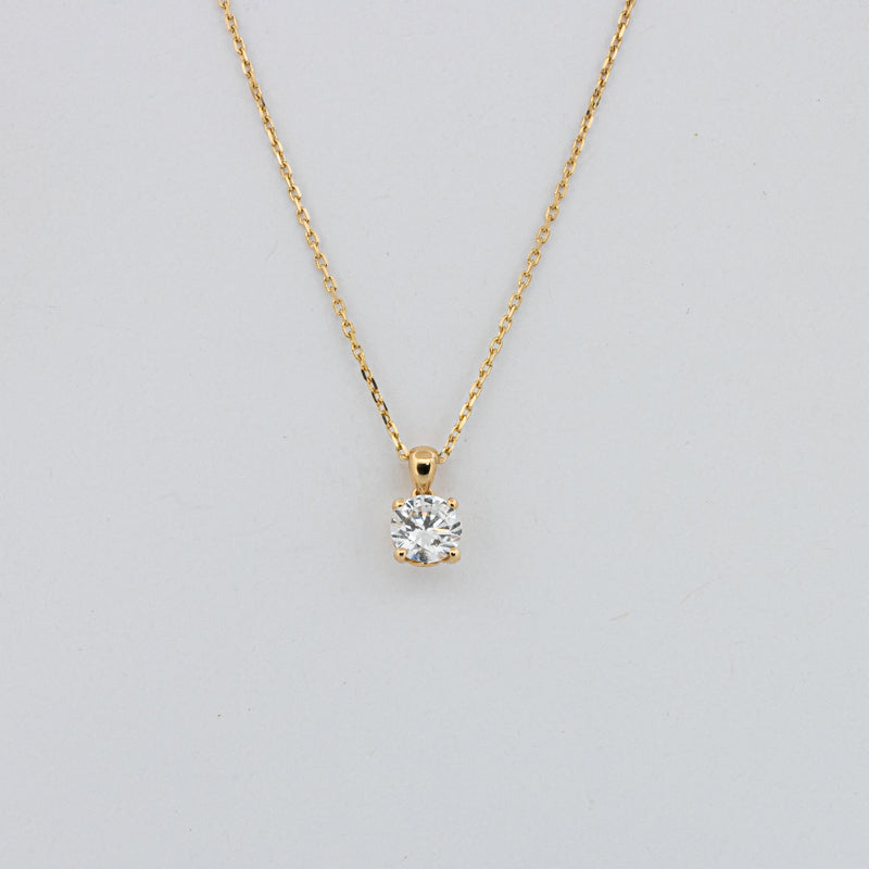 Le pendentif « Rond Classique » brille avec un diamant lab-grown taille ronde de 0.71 ct D/VVS, offrant une brillance éblouissante et un artisanat raffiné.
