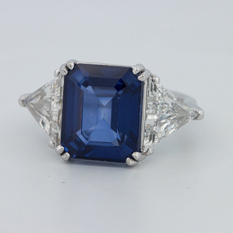 | Pierre Centrale | 7.60 ct Saphir Bleu Recristallisé — Taille Émeraude |