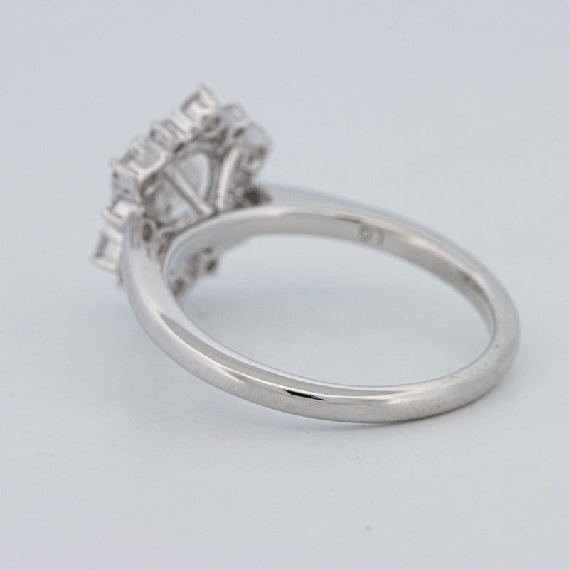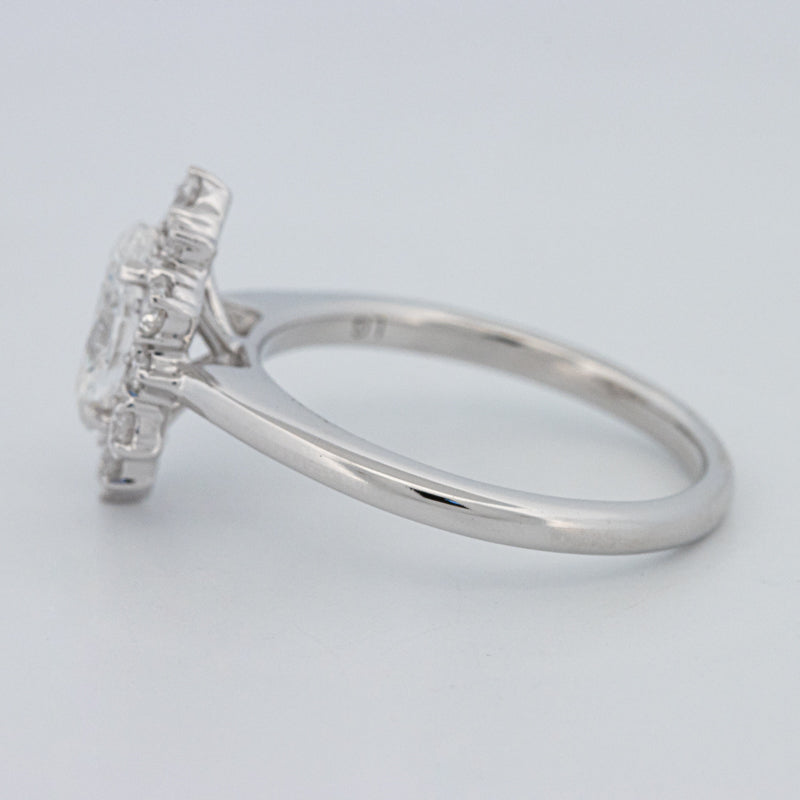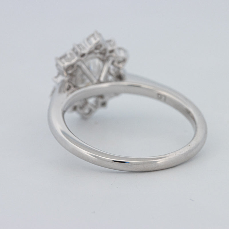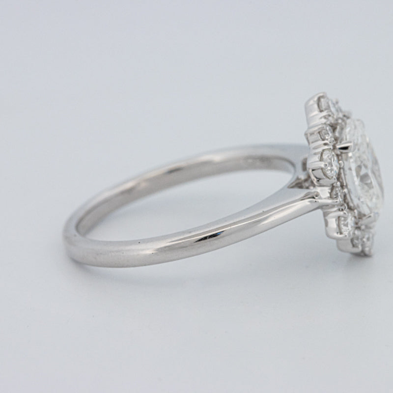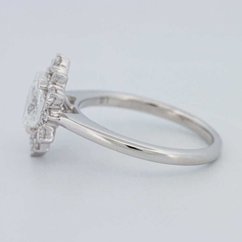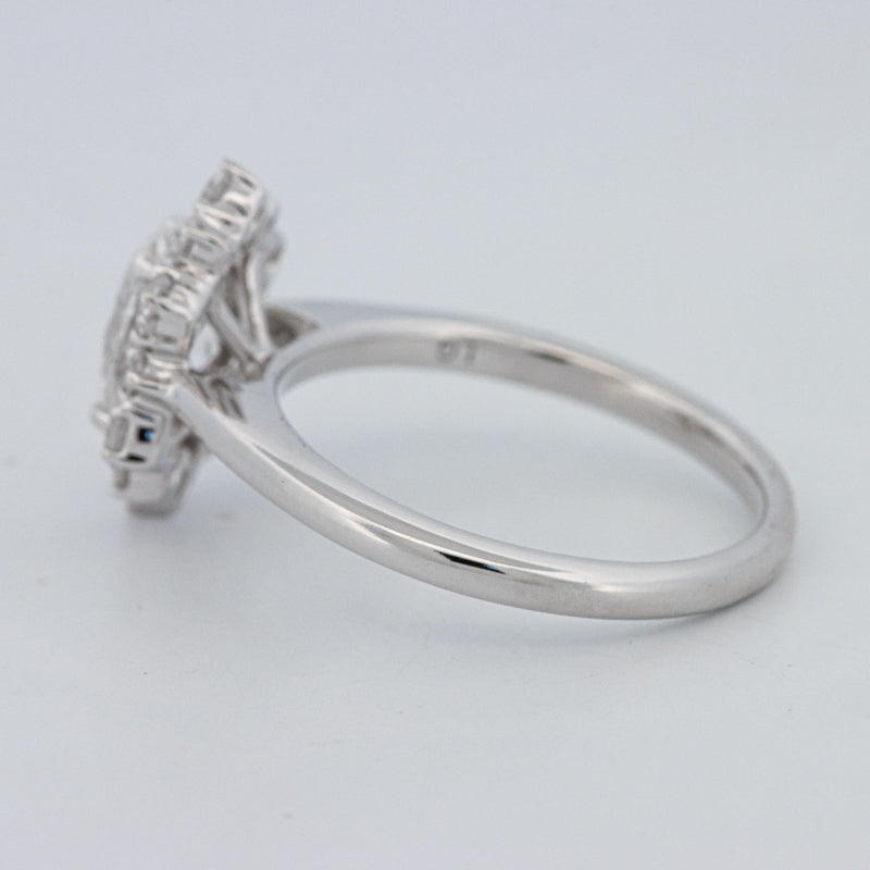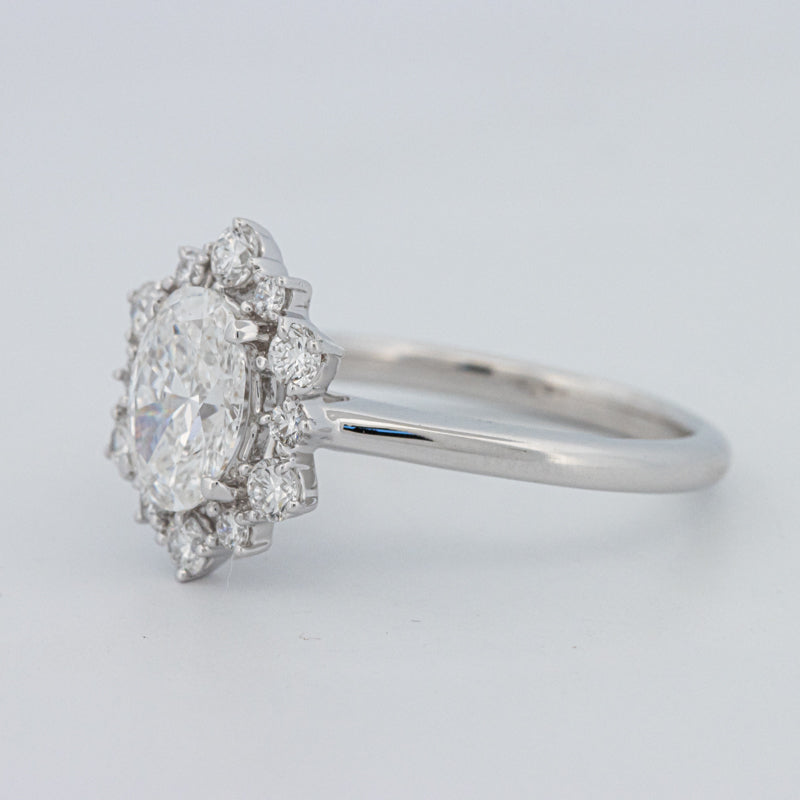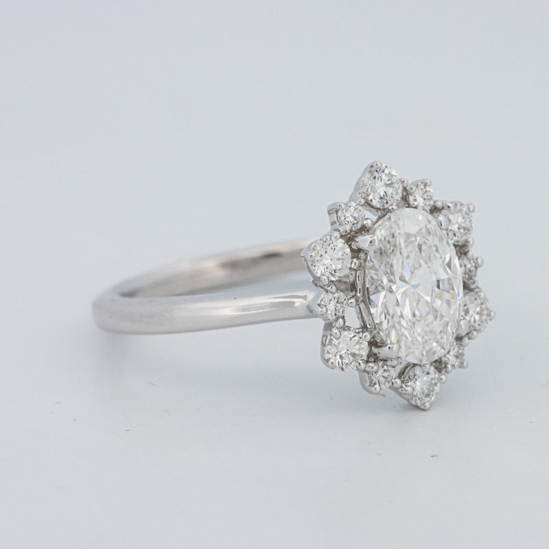 La bague ovale “Calista” présente un diamant lab‑grown taille ovale de 1.05 ct D/VS1, accentué par 0.50 ct de pierres d'accompagnement naturelles, alliant précision moderne et éclat intemporel.