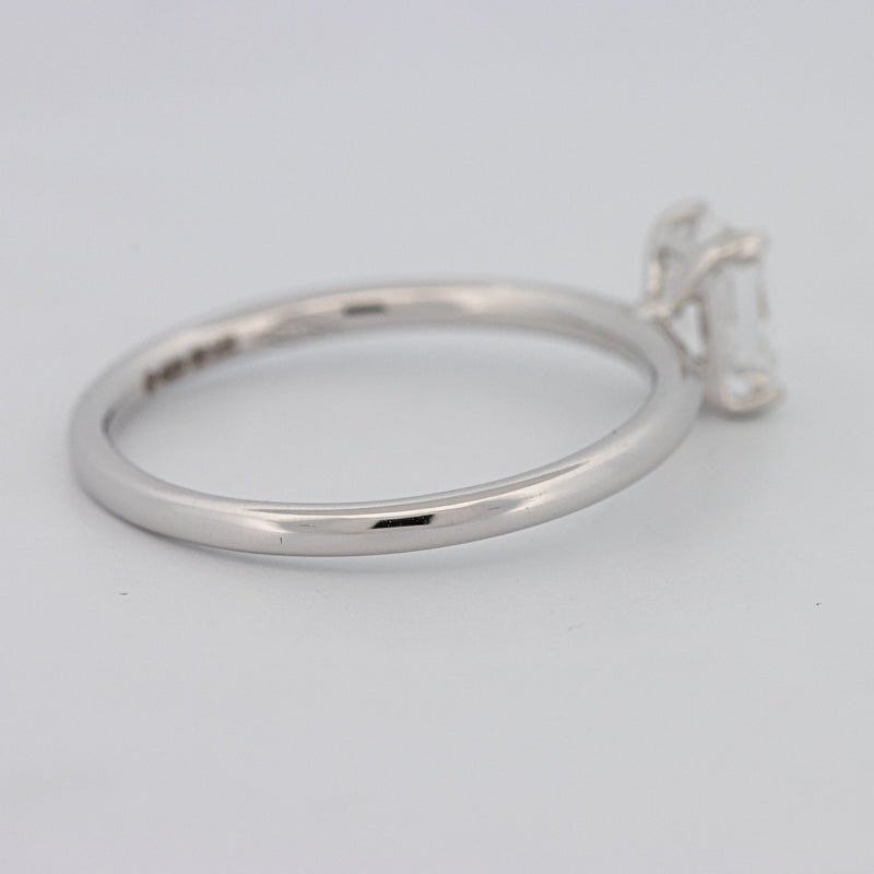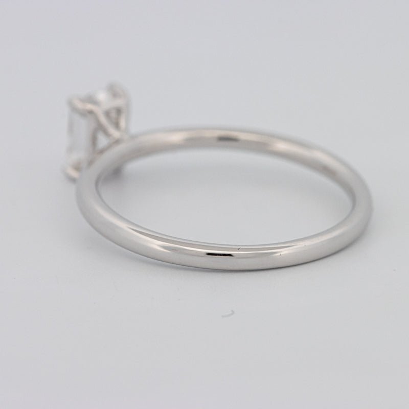 Montée en or blanc 18K, la monture solitaire minimaliste permet à la symétrie et à la pureté du diamant de prendre le devant de la scène.