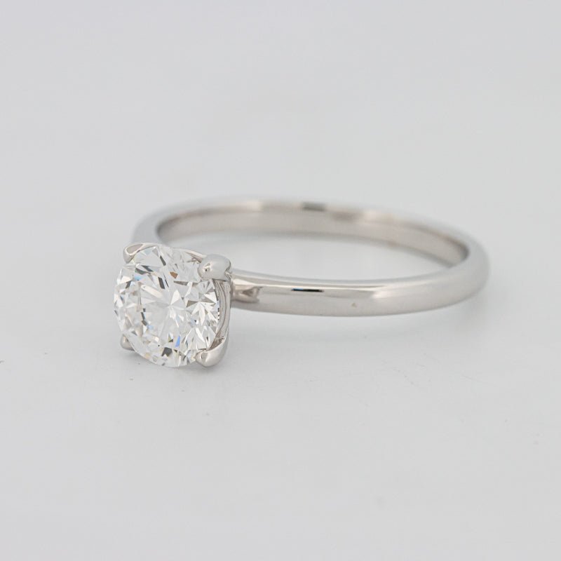 Klassieke Ronde Solitaire (Lab Grown) Ring heeft een 1.00 ct IGI-gecertificeerde lab grown (CVD) ronde briljant in D–E kleur en VS1 zuiverheid, en biedt een tijdloos, verfijnd silhouet.