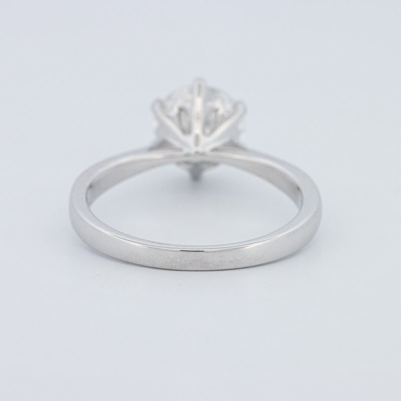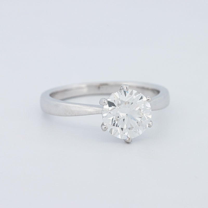 Een 1.58 ct D/VS1 lab‑grown ronde briljant trekt de aandacht in een tijdloze solitaire, met uitzonderlijk vuur en een koele, kleurloze glans.