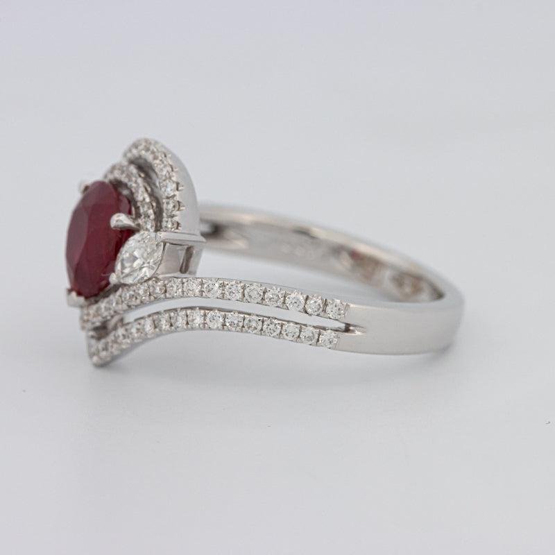 Pierścionek z czerwonym rubinem w kształcie gruszki 1.35 CT