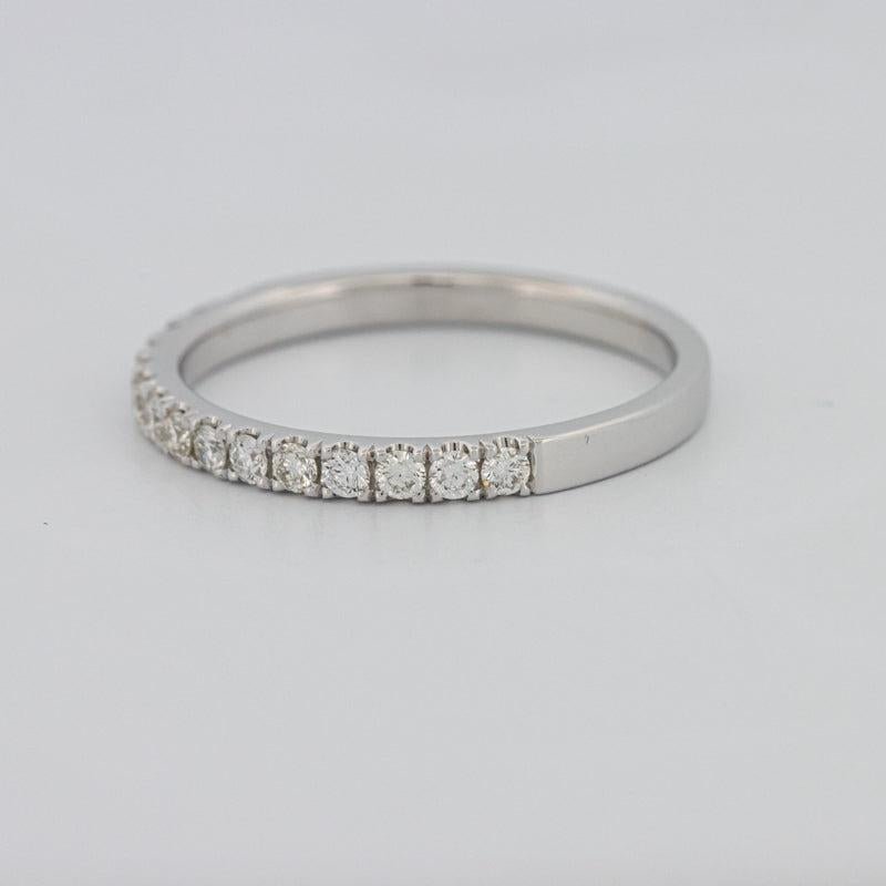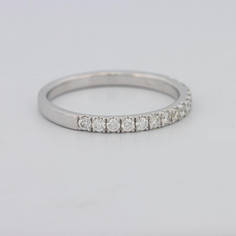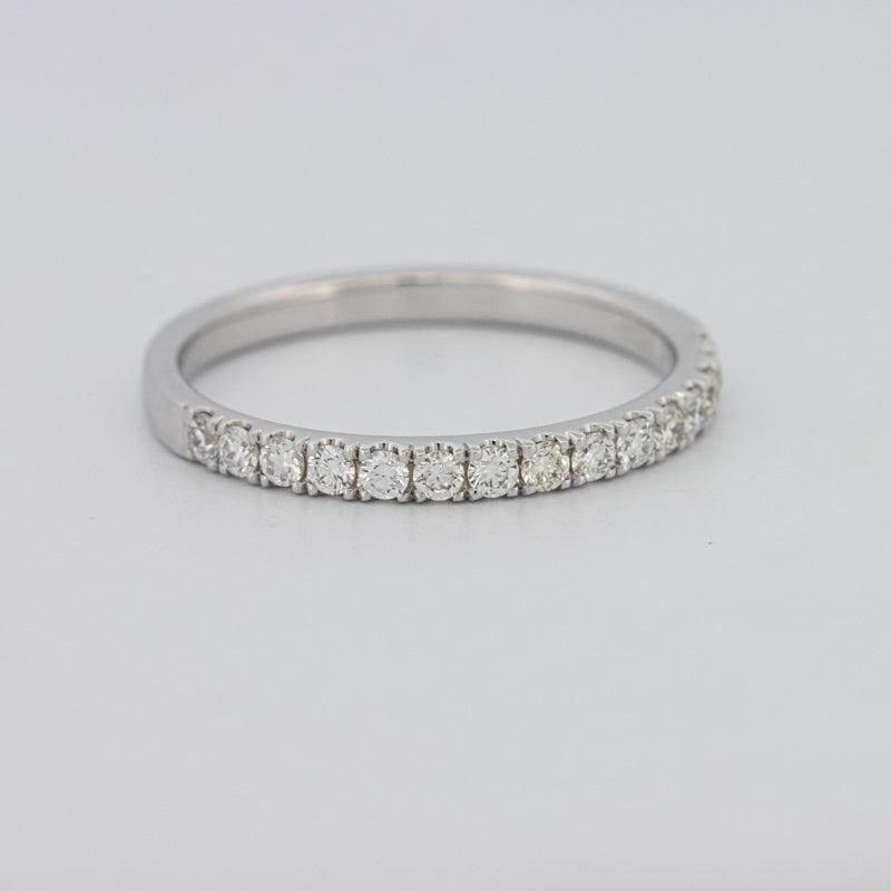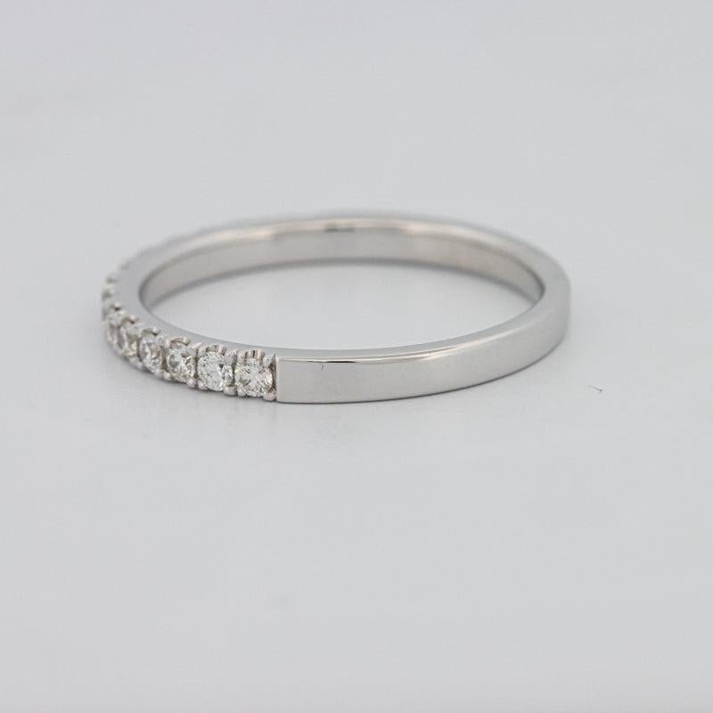 Wykonany z 18K białego złota (2.00g) z 0.50 ct diamentów F/VS, profil 2.0 mm doskonale się układa lub błyszczy jako wyrafinowana obrączka rocznicowa.