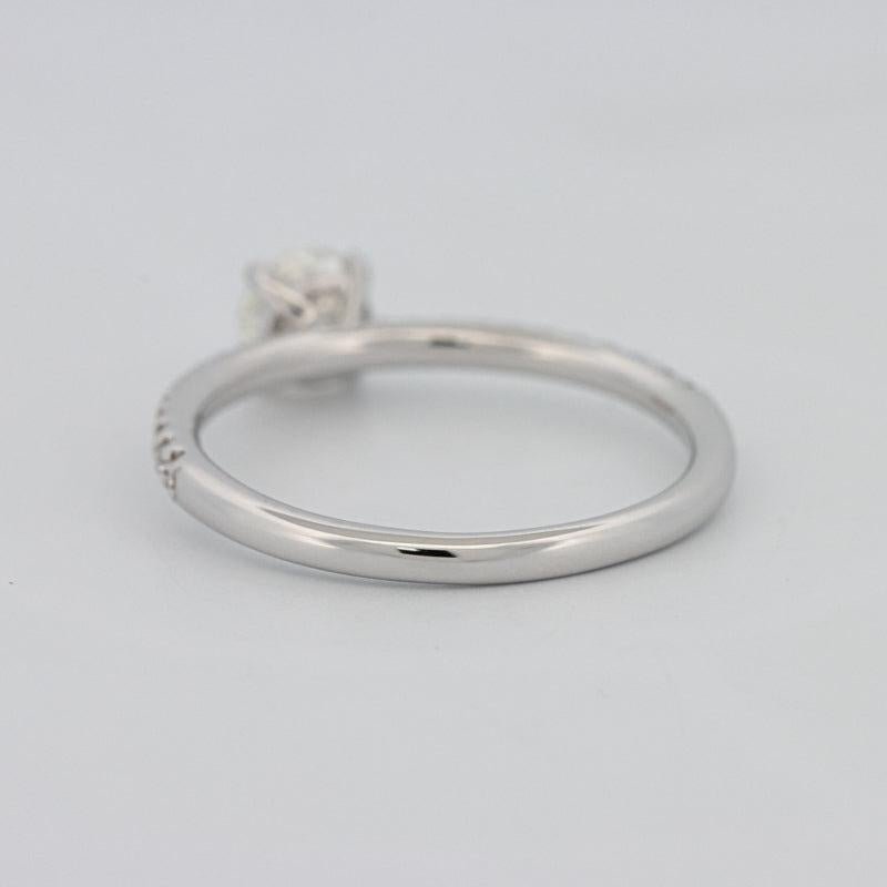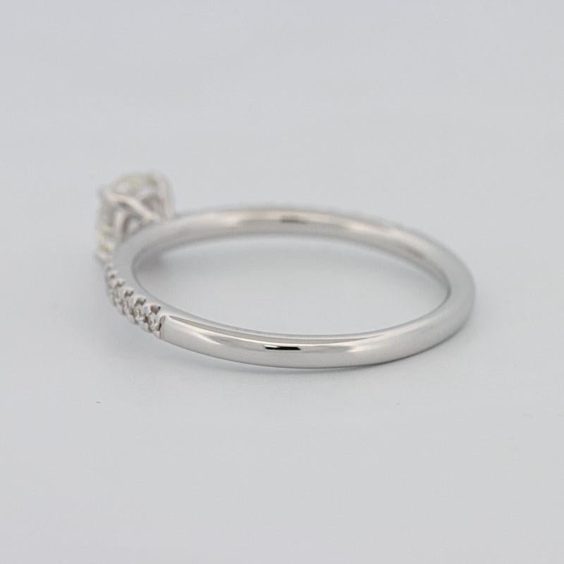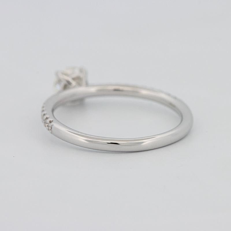 Akcenty Pavé o łącznej masie 0.15 ct w E/VVS zdobią obrączkę, zwiększając migotanie, jednocześnie skupiając uwagę na kamieniu centralnym.