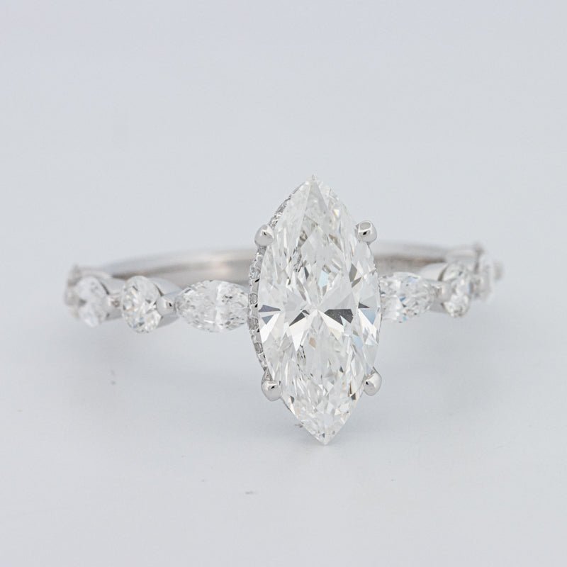 Marquise Under‑Halo Pavé Solitaire posiada 1.57 ct E/VS1 lab‑grown diament w szlifie marquise otoczony 1.00 ct naturalnych diamentów pavé dla warstwowego blasku. html